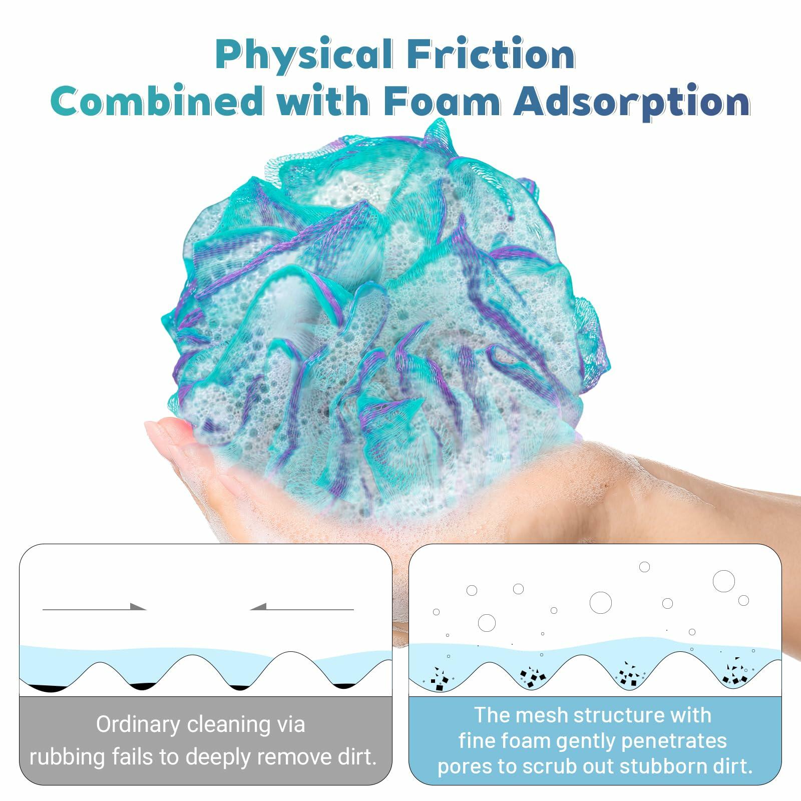 - Gentle Exfoliation, Radiant Skin:Crafted from soft PE material, this bath sponge acts as a perfect shower scrubber. Its fine mesh gently lifts dirt, dead skin, and excess oil, leaving your skin smooth and glowing. Whether you're a man looking for a thorough clean or a woman wanting to pamper your skin, this loofah for women and loofah for men has got you covered