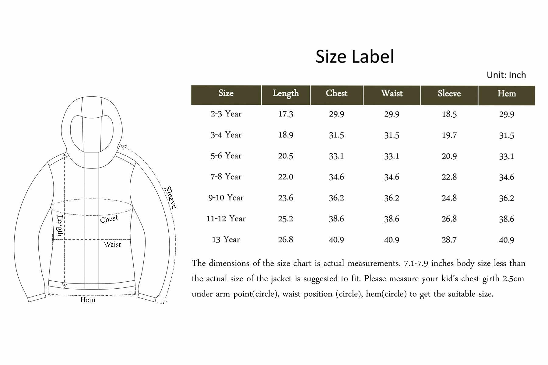 Size: 2-3 Years, 3-4 Years, 5-6 Years, 7-8 Years, 9-10 Years, 11-12 Years, 13 Years