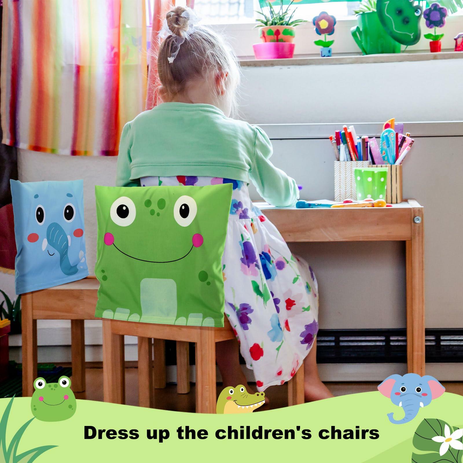 - Preschool Chair Covers: you will get 4 Pcs animal chair covers, chair covers measure 15.7 inches x 13.8 inches(W x H), these chair covers fit most nursery and kindergarten chairs, adding a cute look to chairs; Please measure your chair's width before ordering to ensure compatibility
