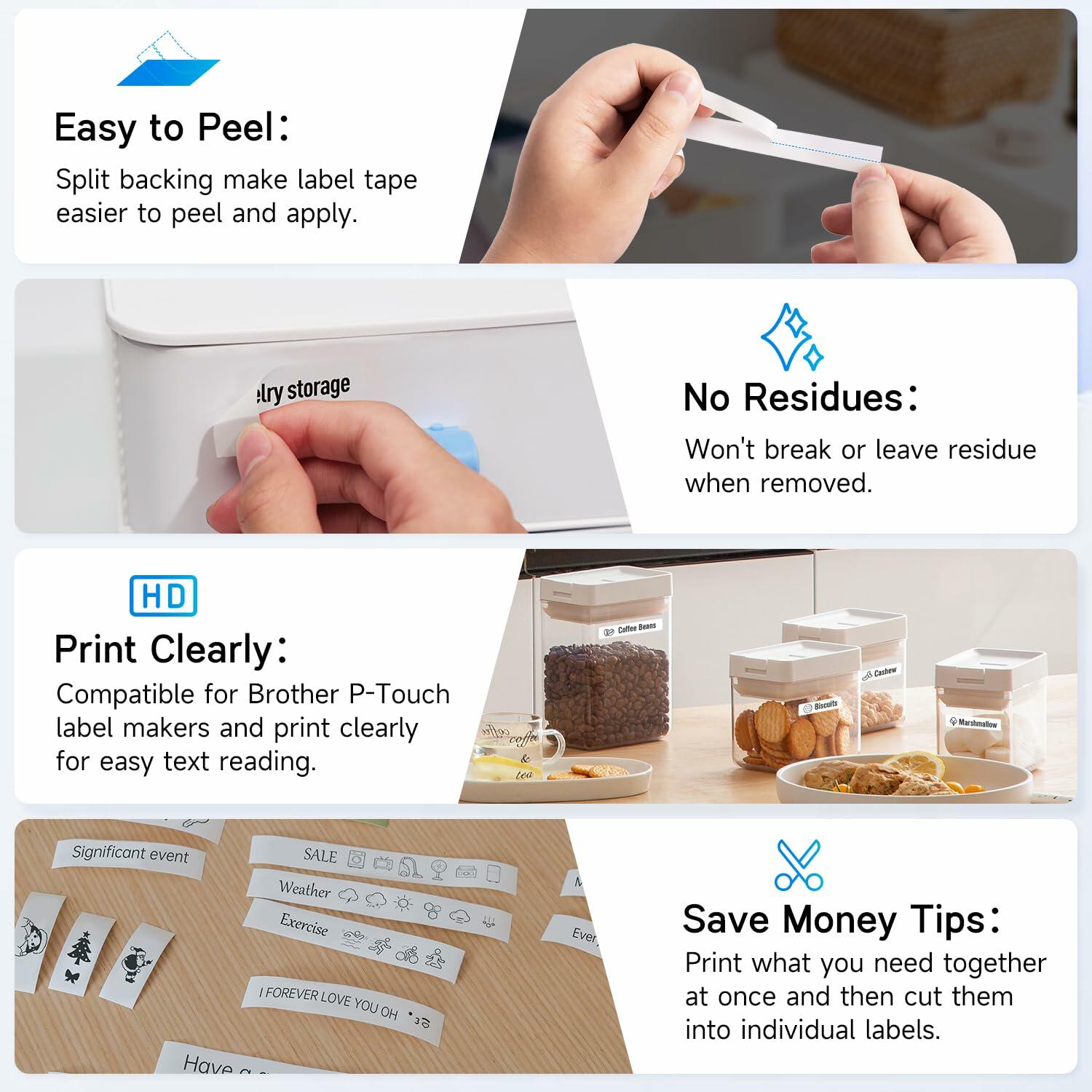 - Clear Text Printing Effect - HPRT label tape works flawlessly with Brother label maker,which can print out recognizable labels easily.