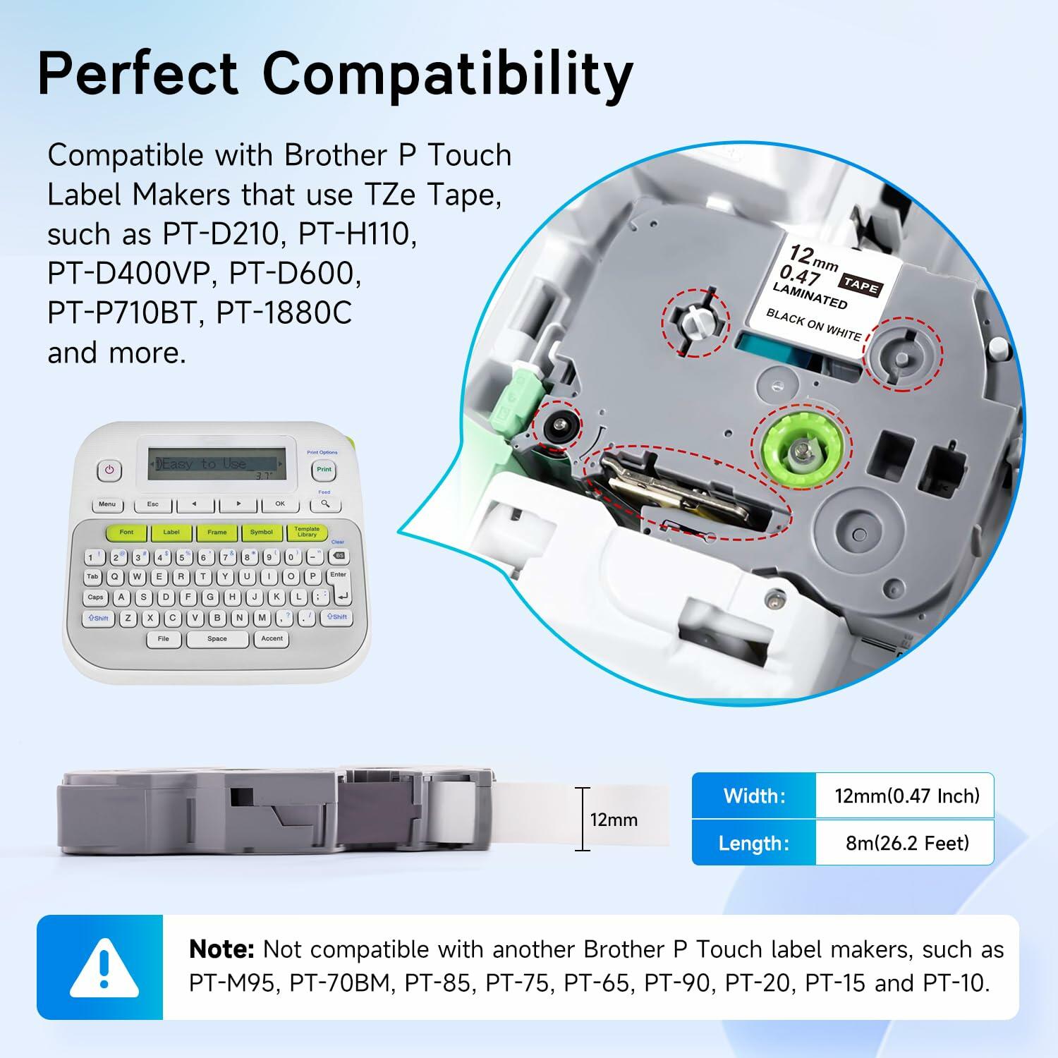 - Product Included - 10 Packs replacement for Brother P Touch Label Maker Tape TZe-231. Color: Black on White. Width: 0.47 Inch (12mm). Lenght: 26.2 Feet (8m).