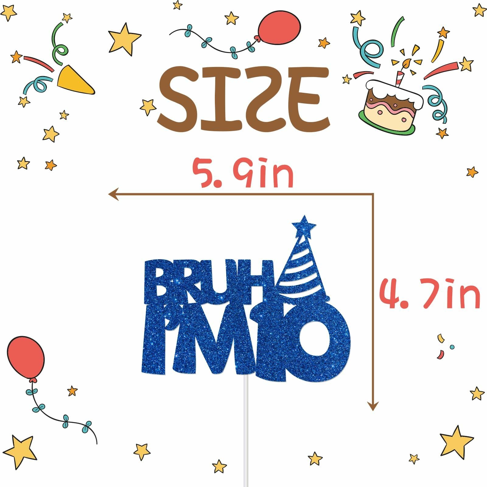 “Bruh I’m 10” Blue Glitter Cake Topper 10th Birthday Party Decor Kids Boys