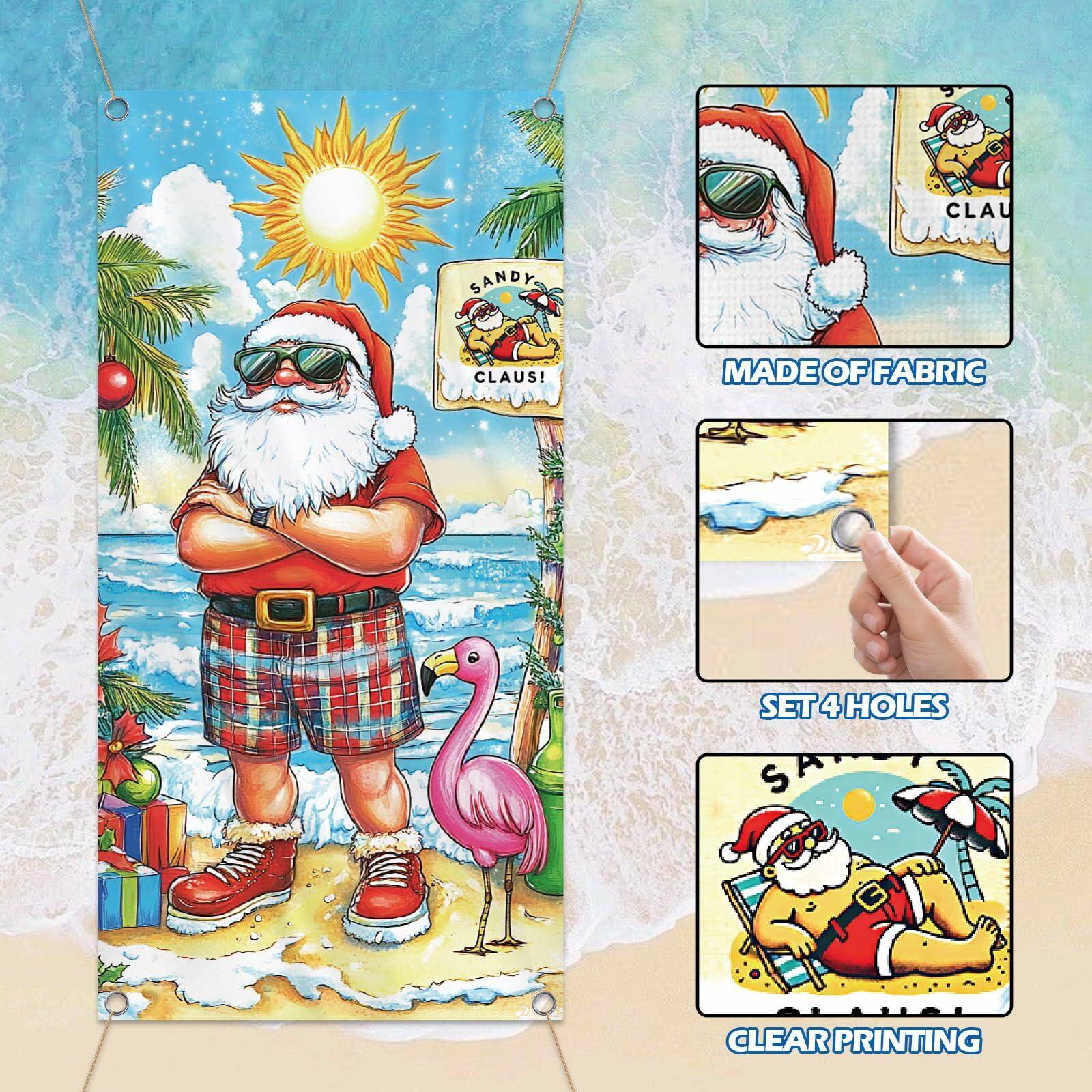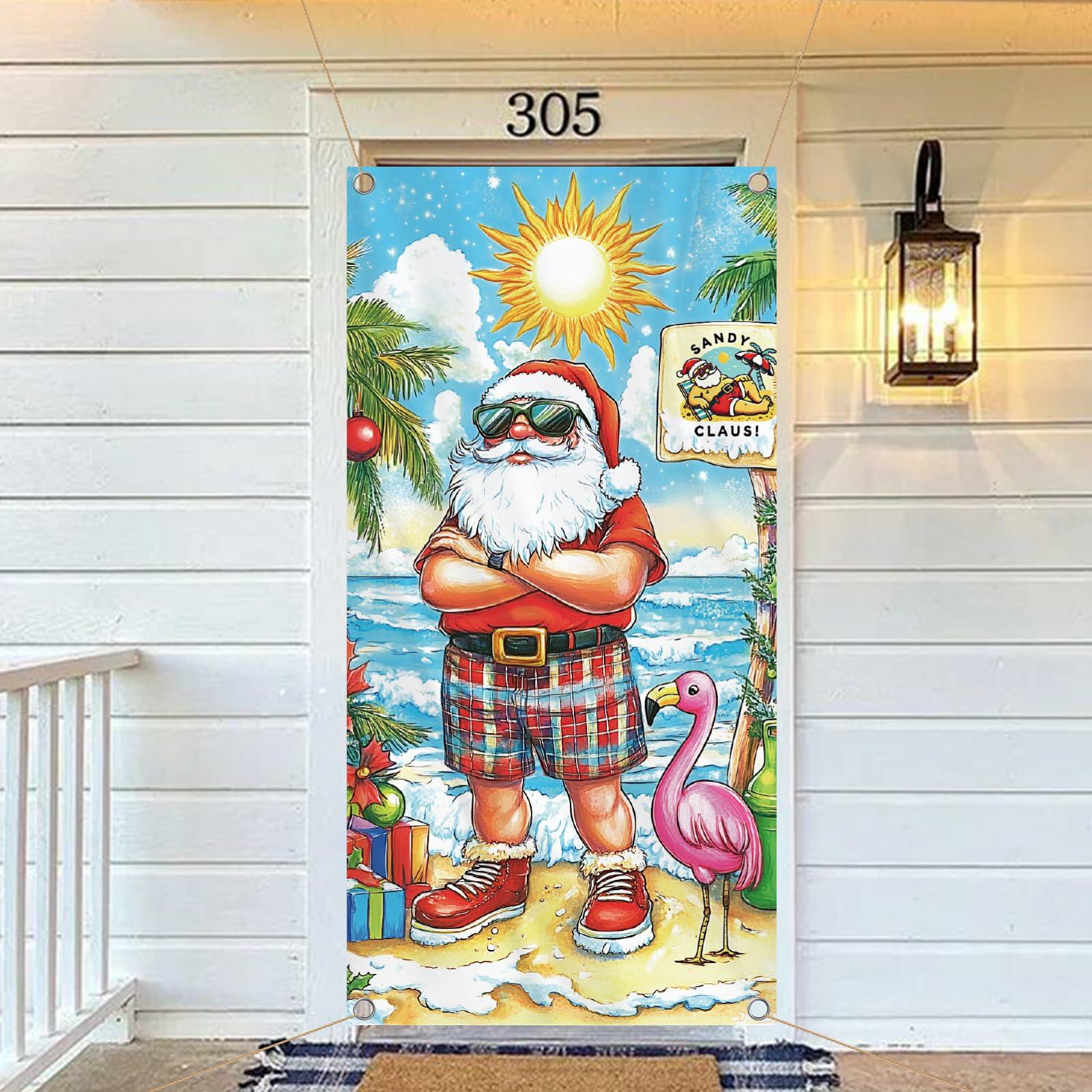 Buff Santa Hawaiian Beach Door Cover Summer Christmas Party Decoration