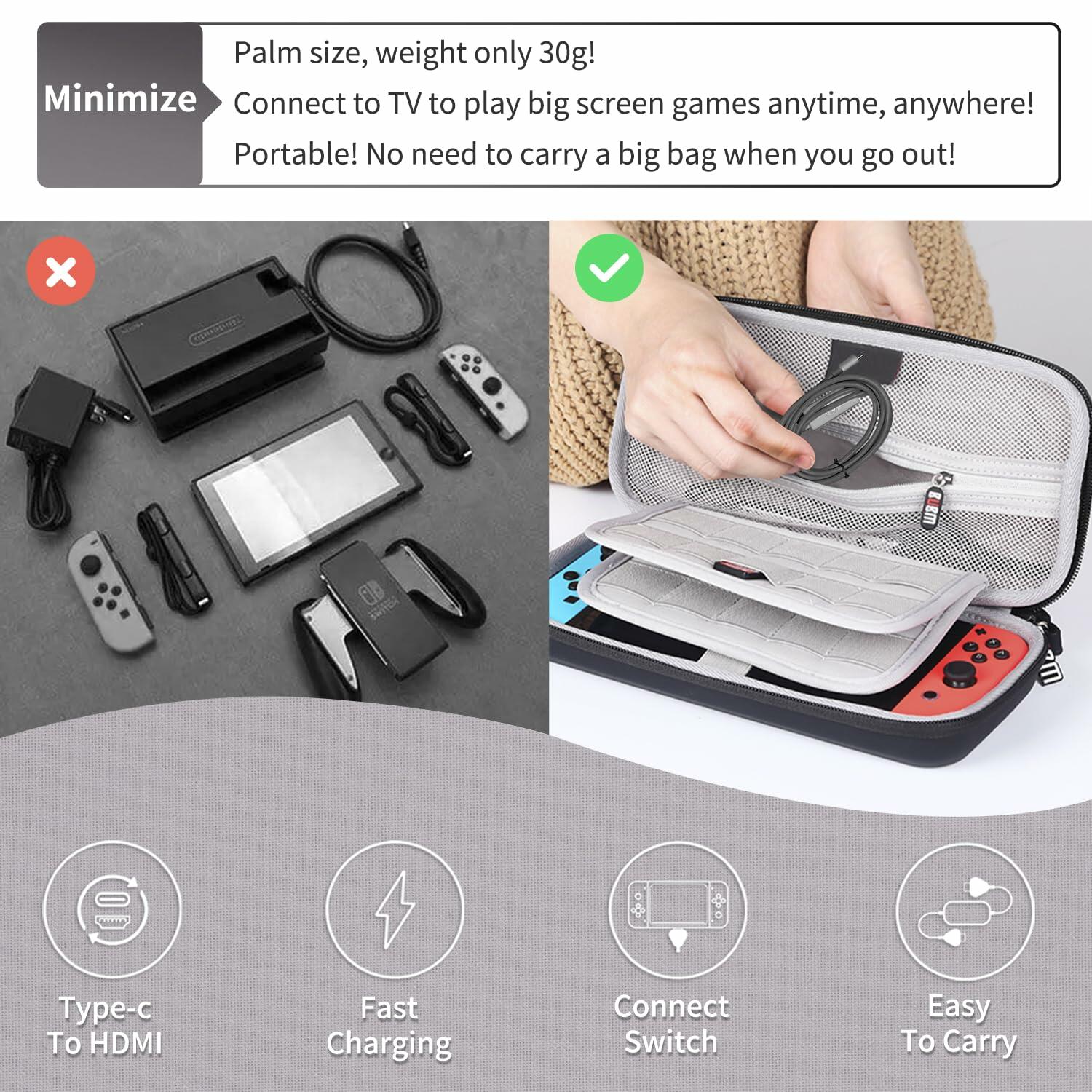 - 【Lightweight & Fashion Design 】Switch MINI Dock is only as big as a palm. You can put it in your handbag or computer bag and enjoy TV games anytime, anywhere. It is an ideal choice for going out, traveling and partying. Note: Switch Lite is not supported because Switch Lite has no screen projection function.