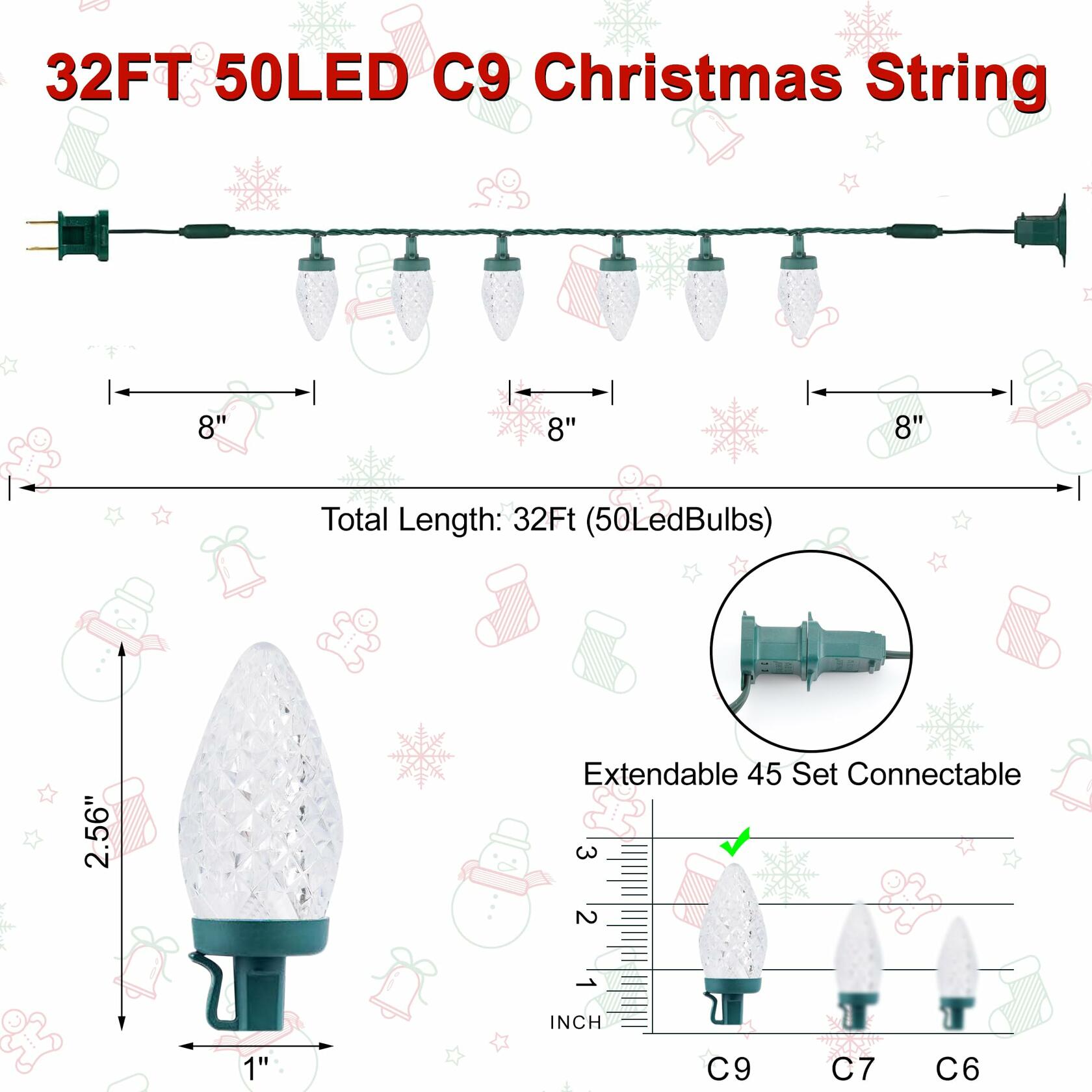 - Convenient Length: With a total length of 32 feet, these C9 christmas lights provide ample coverage for decorating larger areas.