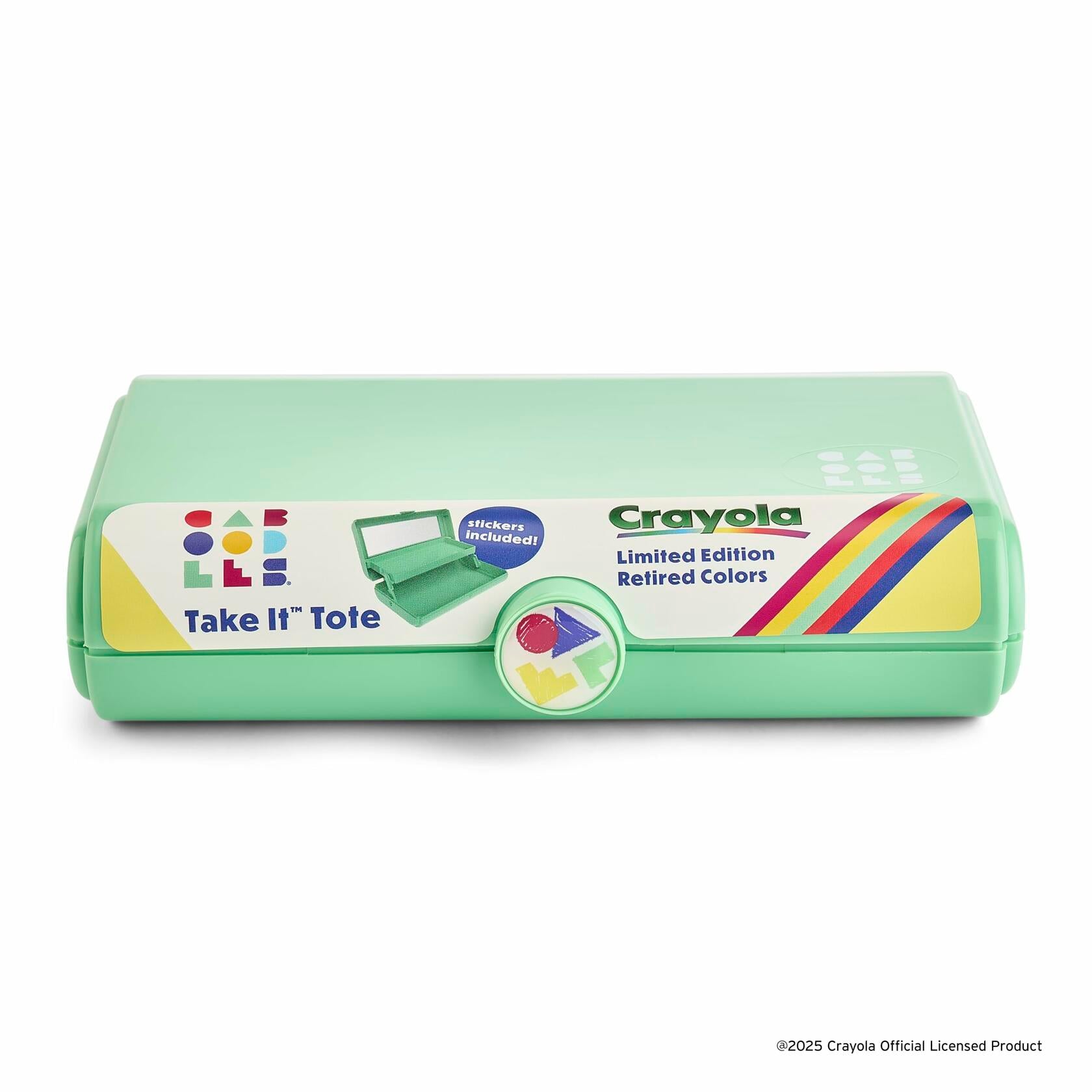 - CABOODLES TAKE IT TOTE COSMETIC CASE: Featuring Limited Edition Retired Colors from Crayola, this case keeps you organized in retro style and it's just the right size for touch-ups when you need to add a little glitz to your glam. Each case includes a Crayola-themed sticker sheet.