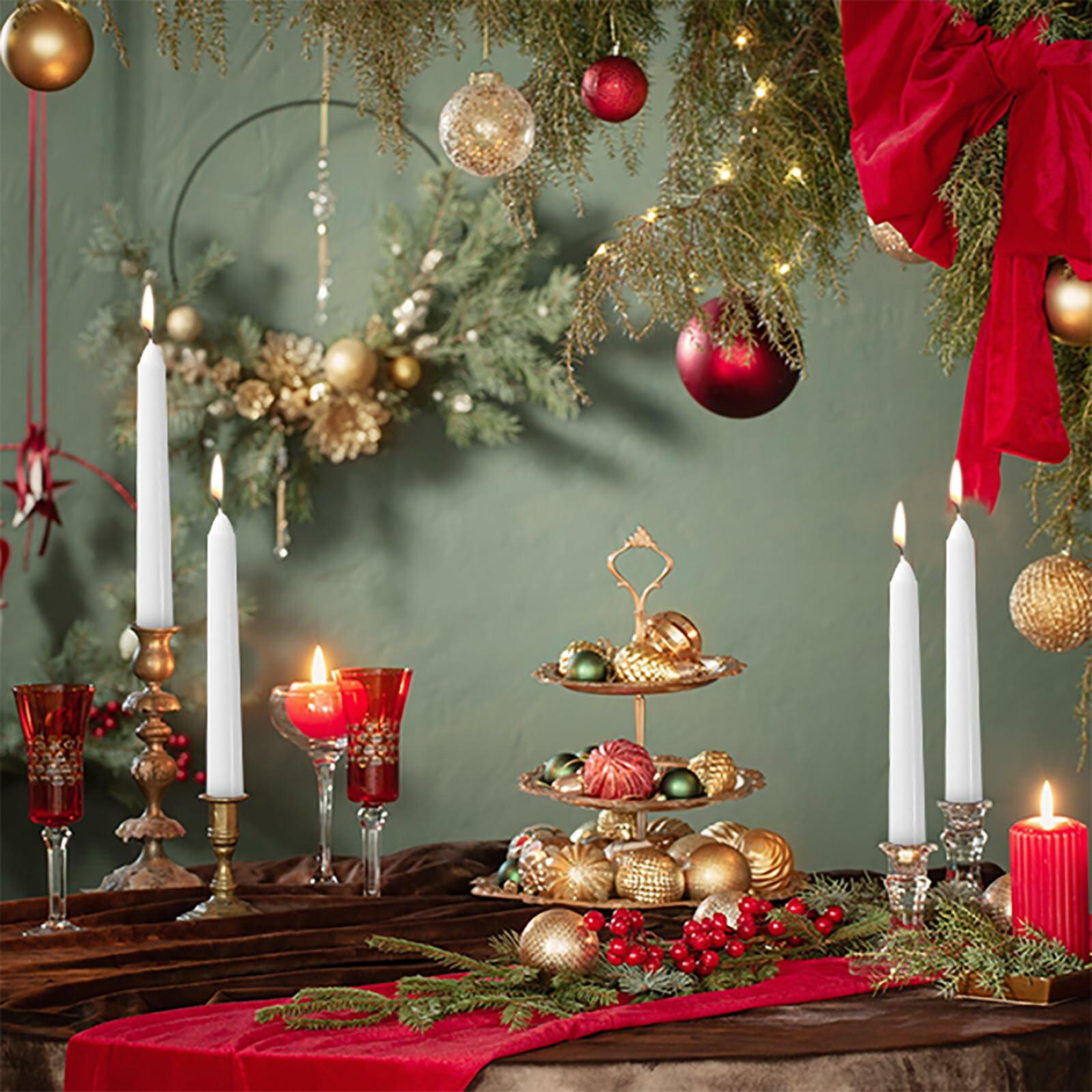 Cacou White Taper Candles 12 Pack 8Hr Burn Unscented Paraffin Wax