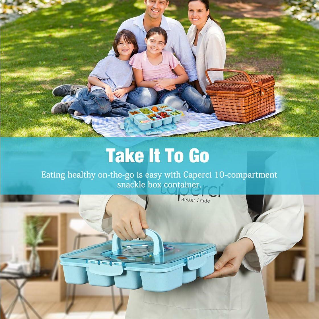 Caperci Snackle Box Large 10-Compartment Tray with Lid Handle Blue