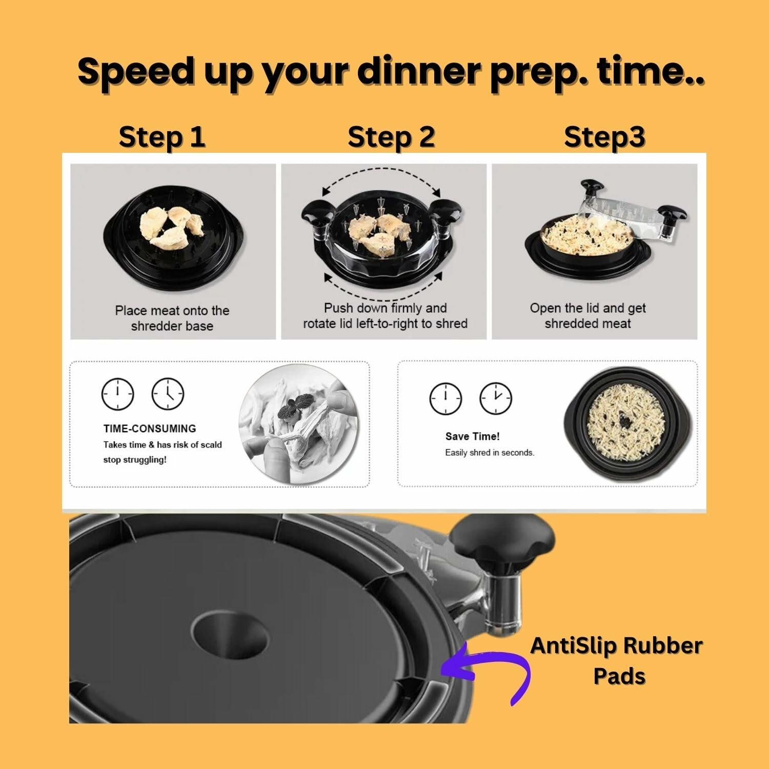 - Effortless Twisting: Simply twist the shredder to effortlessly shred chicken, meat, or vegetables with minimal effort with the support of ergonomic both hand knobs.