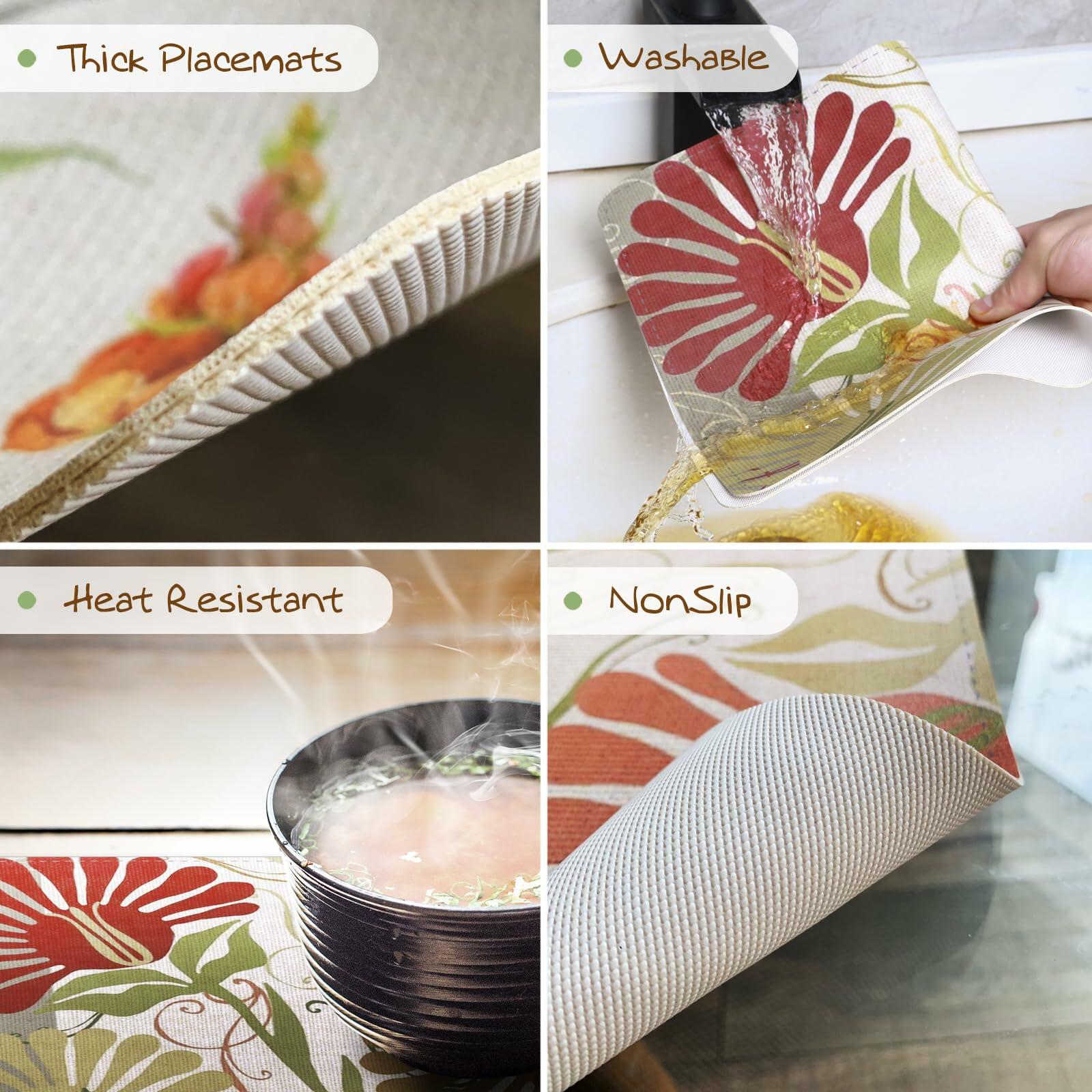 - ❀【Washable and Easy to clean】 Place Mat After use, you only need to wipe or wash with water to remove stains. The place mats are resistant to scratches and stains, which makes them a great choice in homes with small kids.