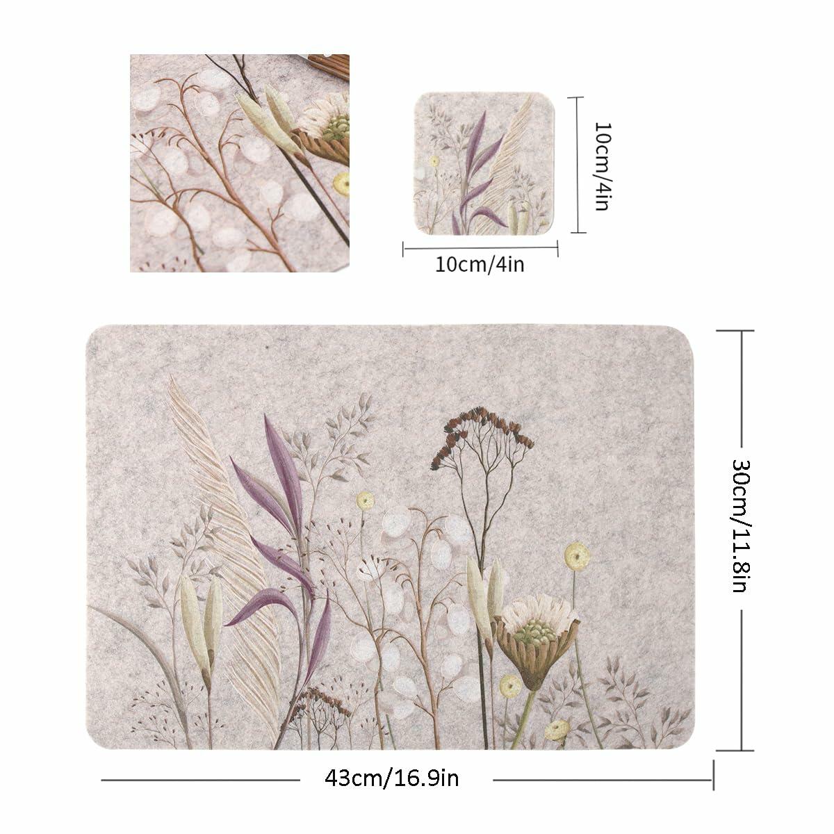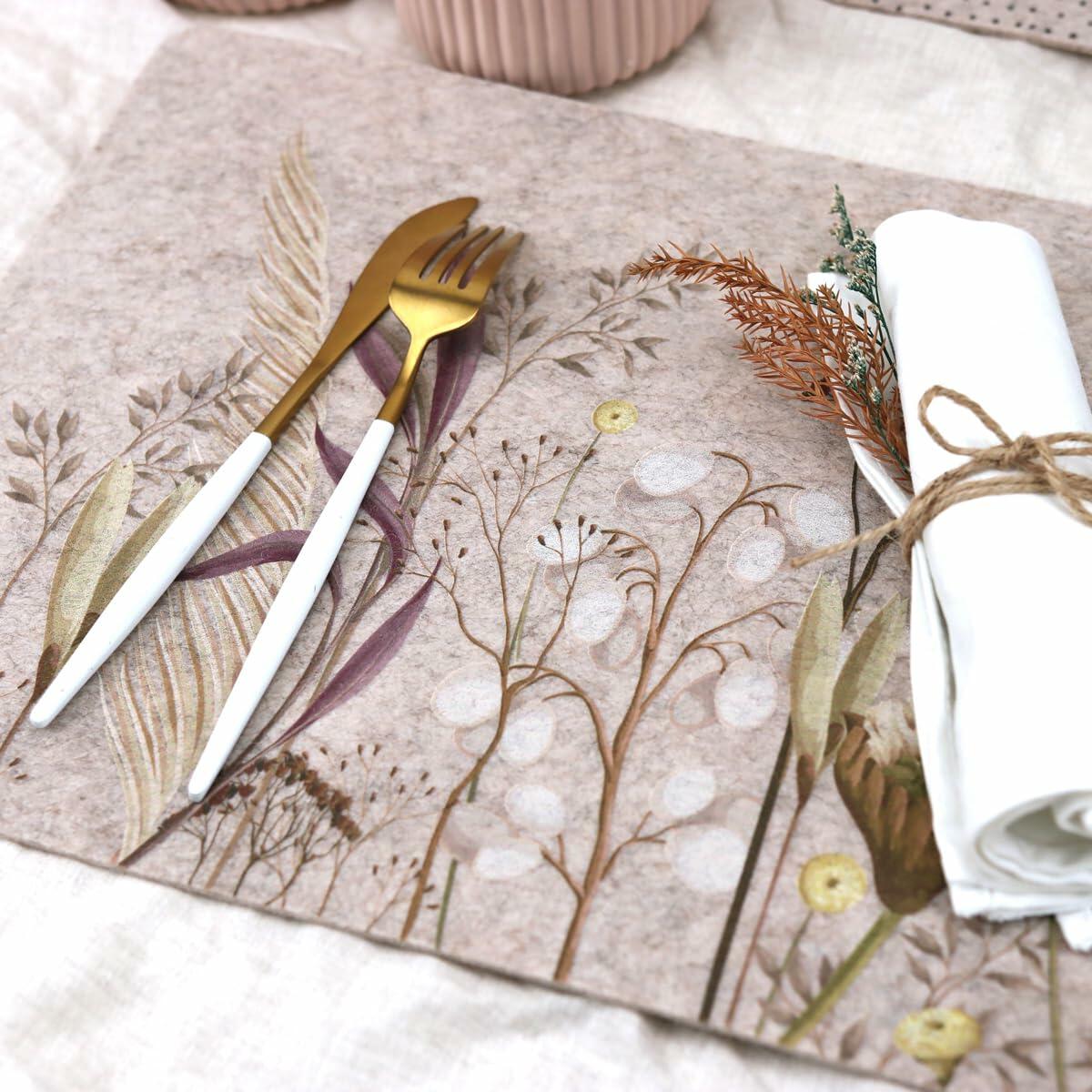 - ❀【Size of place mats】17"X12"(43cmX30cm); Thet are big enough for both plates and drinks. including 6 table MATS (17 "*12"),6 coasters(4 "*4"). Our placemats made are made of 3mm ultra-thick high quality felt, making them both durable and easy to clean, and can be safely used on the dining table. The felt we use is designed to be durable and withstand years of use.