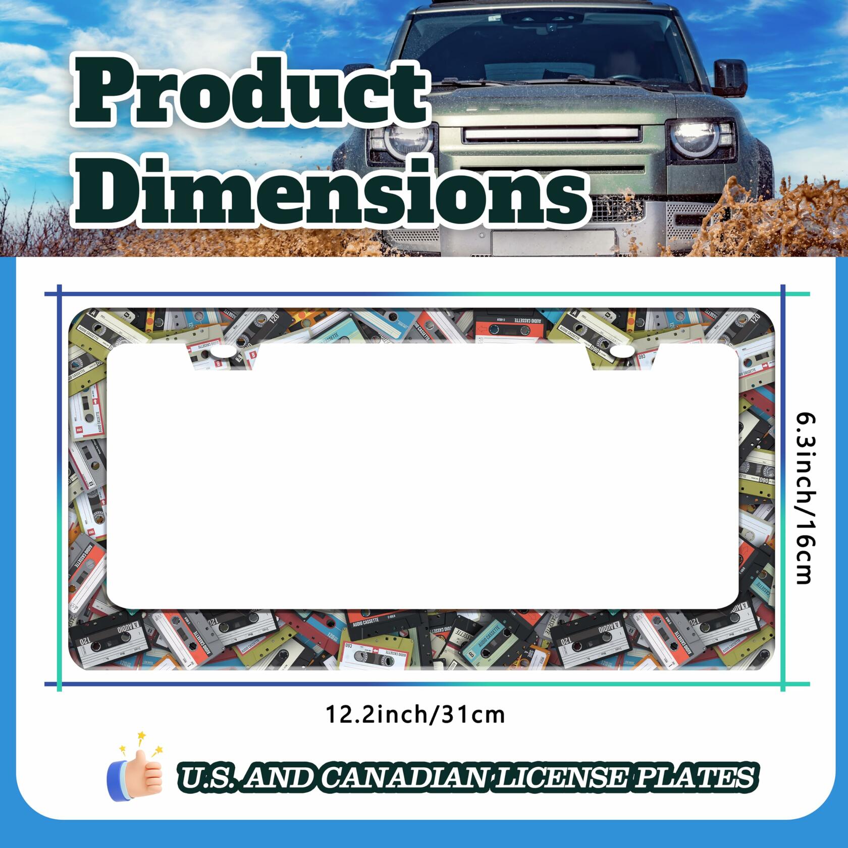 - 6.3 X 12.2 INCHES: Suitable for most standard size U.S. and Canadian license plates, can be applied to front or rear license plates, universal style. Add points to the beauty of your car!