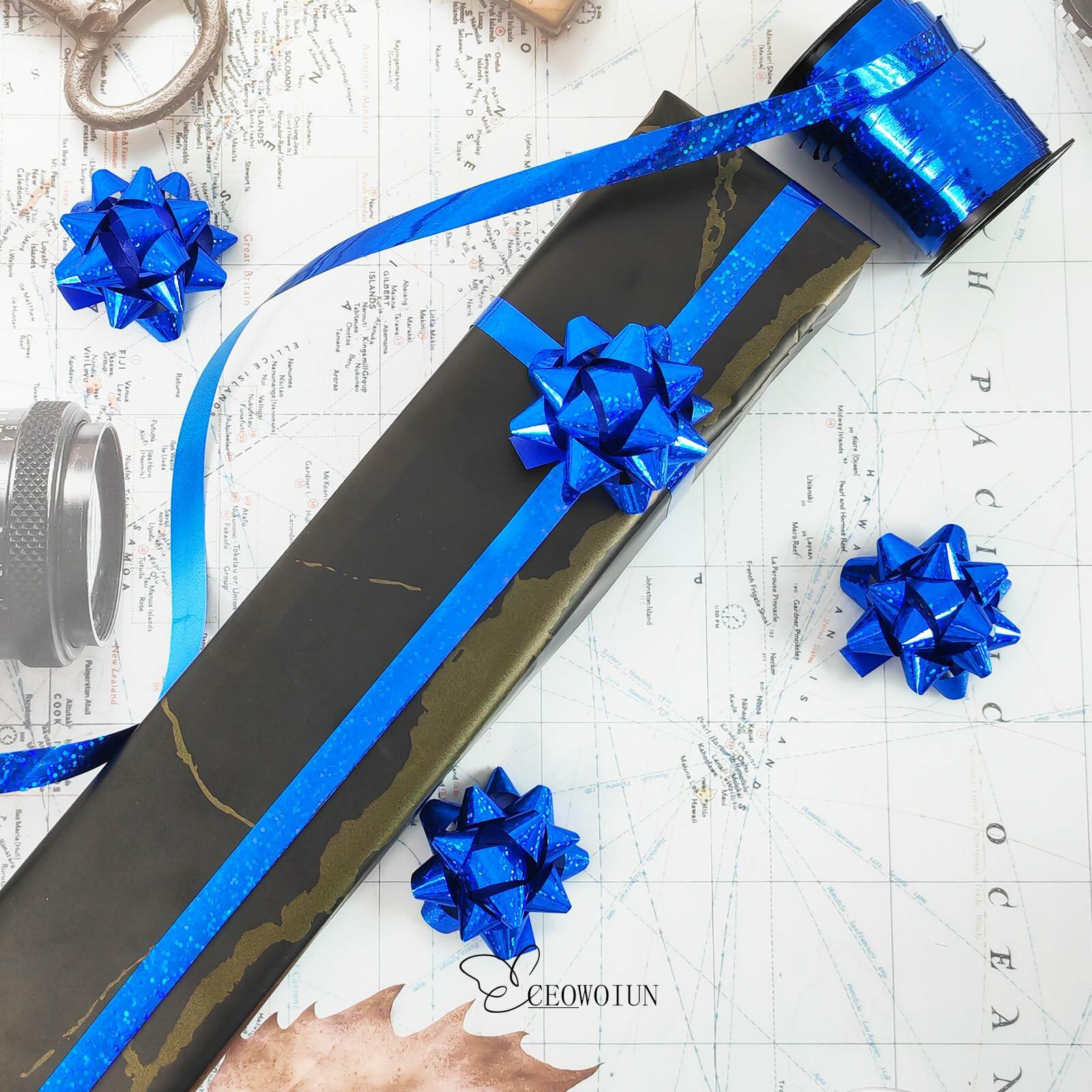 - UNIQUE DESIGN:The glitter curling ribbon a combination of gift bow and glittering ribbons,including 4pcs 2 inches of gift bow and 3/8 inches *10 yards of Shiny metallic curling ribbon