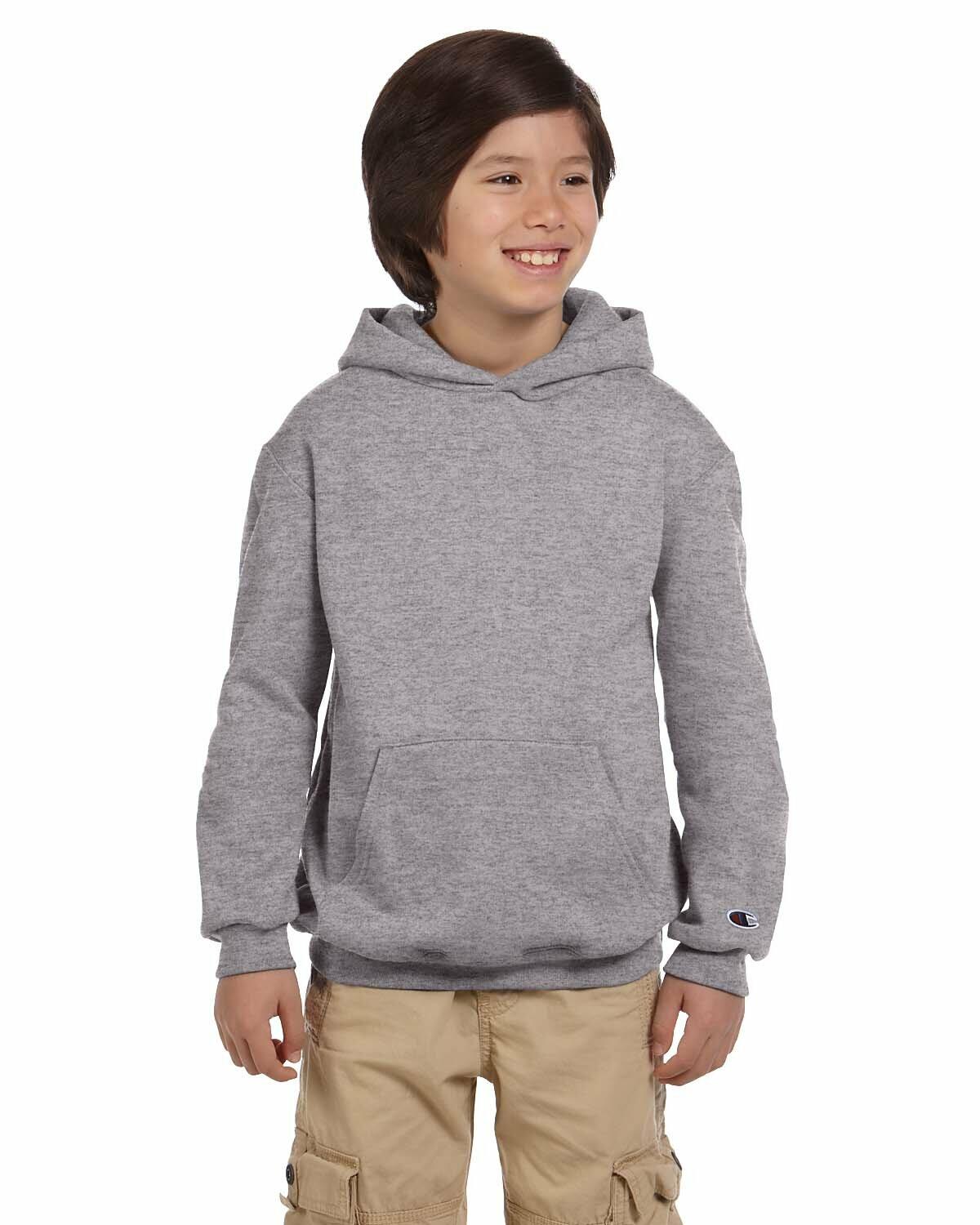 CY4C Champion Youth 50/50 Pullover Hooded Sweatshirt The name we all know for sweatshirts, in just the style you want. Coordinate: Adult S126 50% cotton/50% polyester 9-oz. cover-stitching throughout no draw-cord (for safety) set-in sleeves rib-knit waistband and cuffs left cuff C logo Sizes: S-L