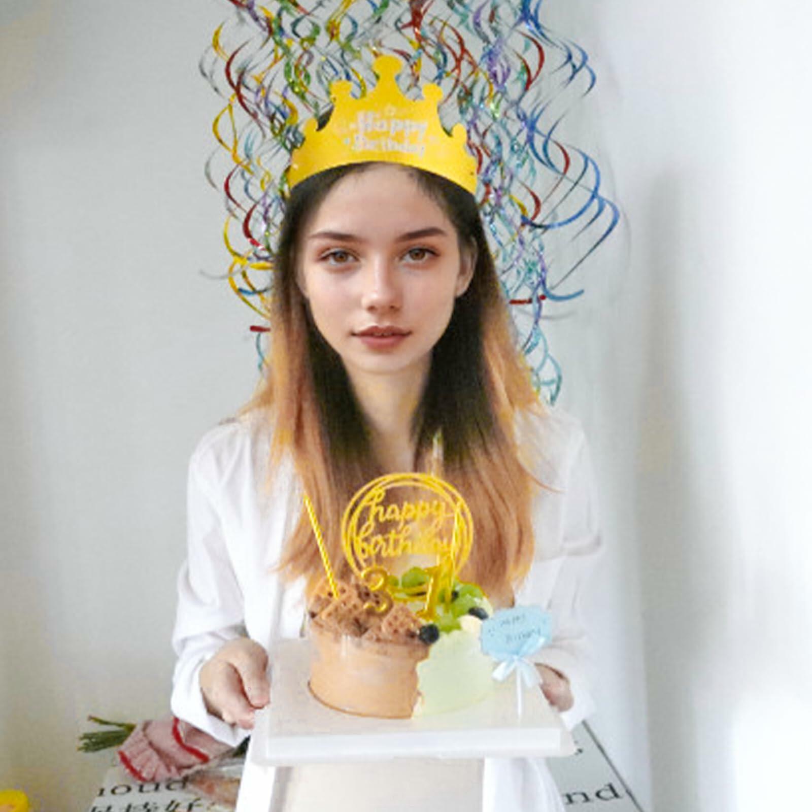 - Birthday Cake Toppers and Birthday Crown Hat: Gold happy birthday cake toppers are made of acrylic, which have sturdy construction and vibrant color. Gold Birthday Crown Hat is made of paper, adjustable in size, and is a fun and festive accessory for birthday parties.