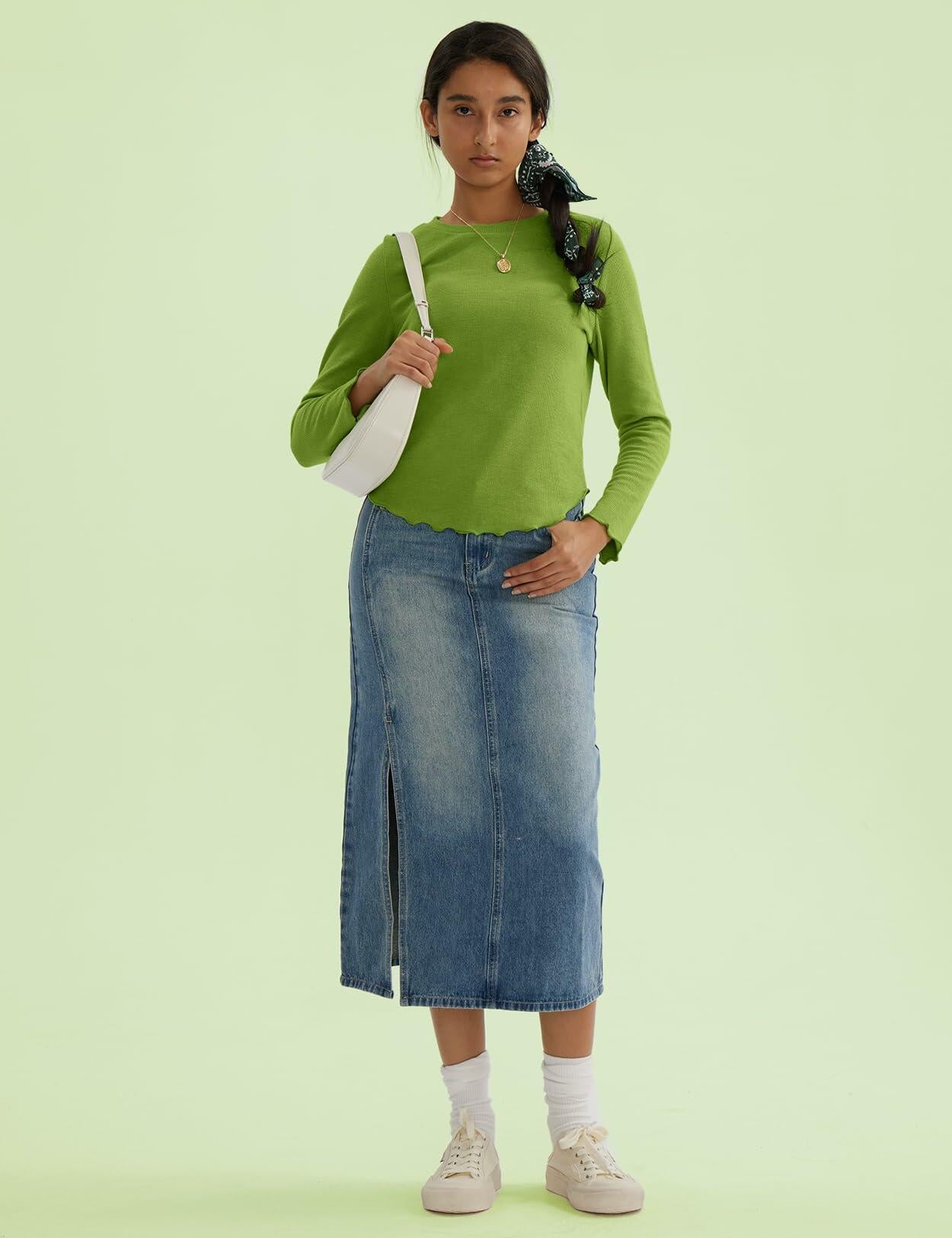 - FASHION DESIGN:This womens pullover sweatshirts features a clean yet sophisticated design. Its solid color, long sleeves, and classic round neckline create a timeless and versatile look. Delicate ruffle-lettuce edging adds a playful charm, enhancing the overall appeal of the garment.