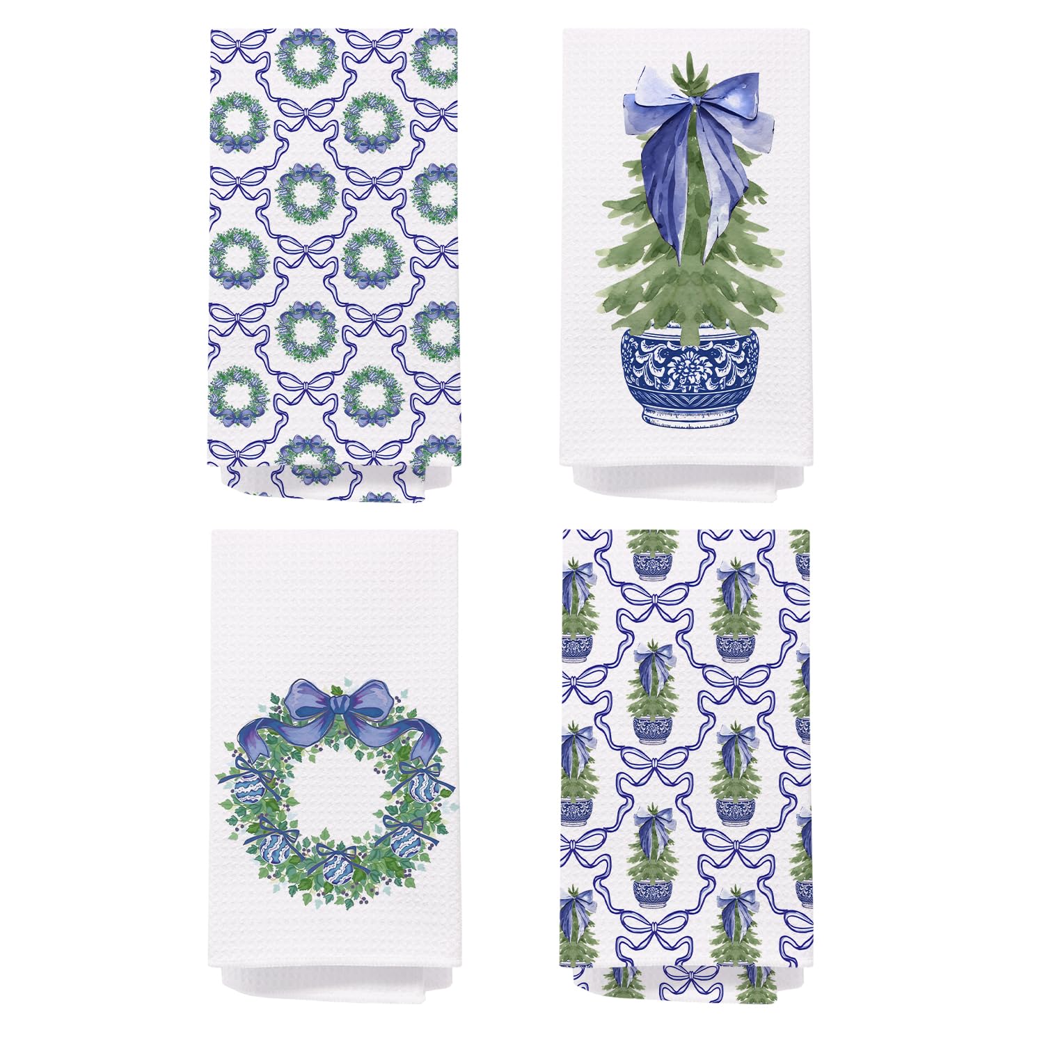 Chinoiserie Christmas Kitchen Towels Set of 2 Pink Bow 16x24 Inches