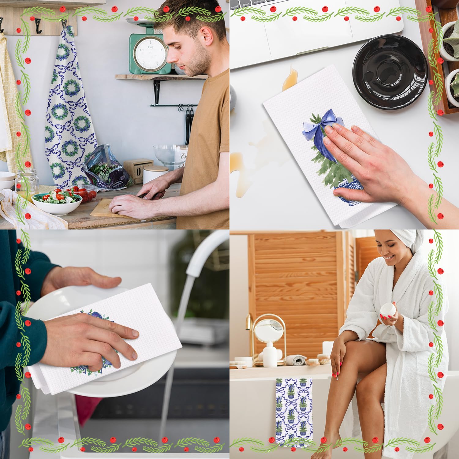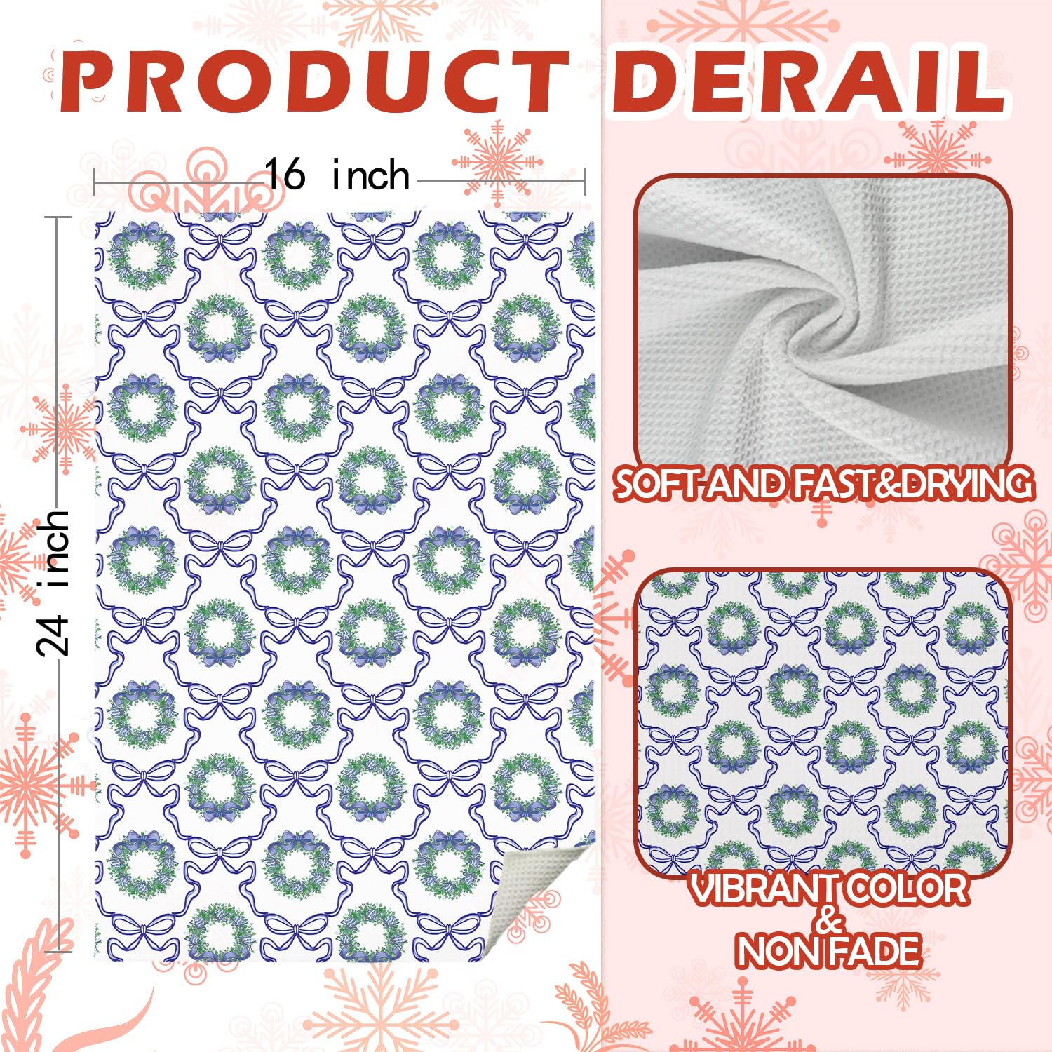 - Size: With measurements of 16 x 24 inches, these kitchen towels are highly versatile and ideal for all your home and kitchen tasks.