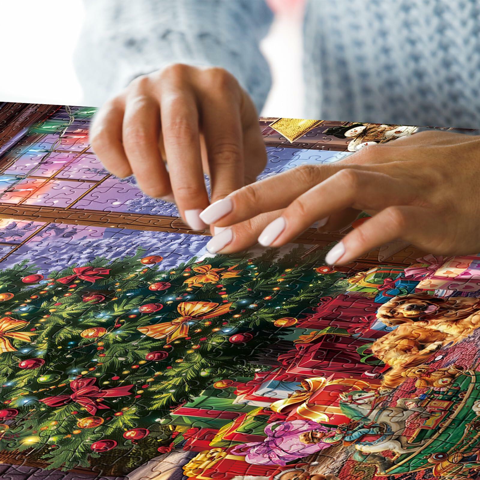 - Cozy Holiday Puzzle: Enjoy the magic of the holidays with our cozy Christmas puzzle. This charming loft scene showcases a beautifully decorated Christmas tree, a cheerful Santa Claus, and an assortment of delightful toys. Outside the window, a gentle lavender snow scene adds to the warmth and joy of the season