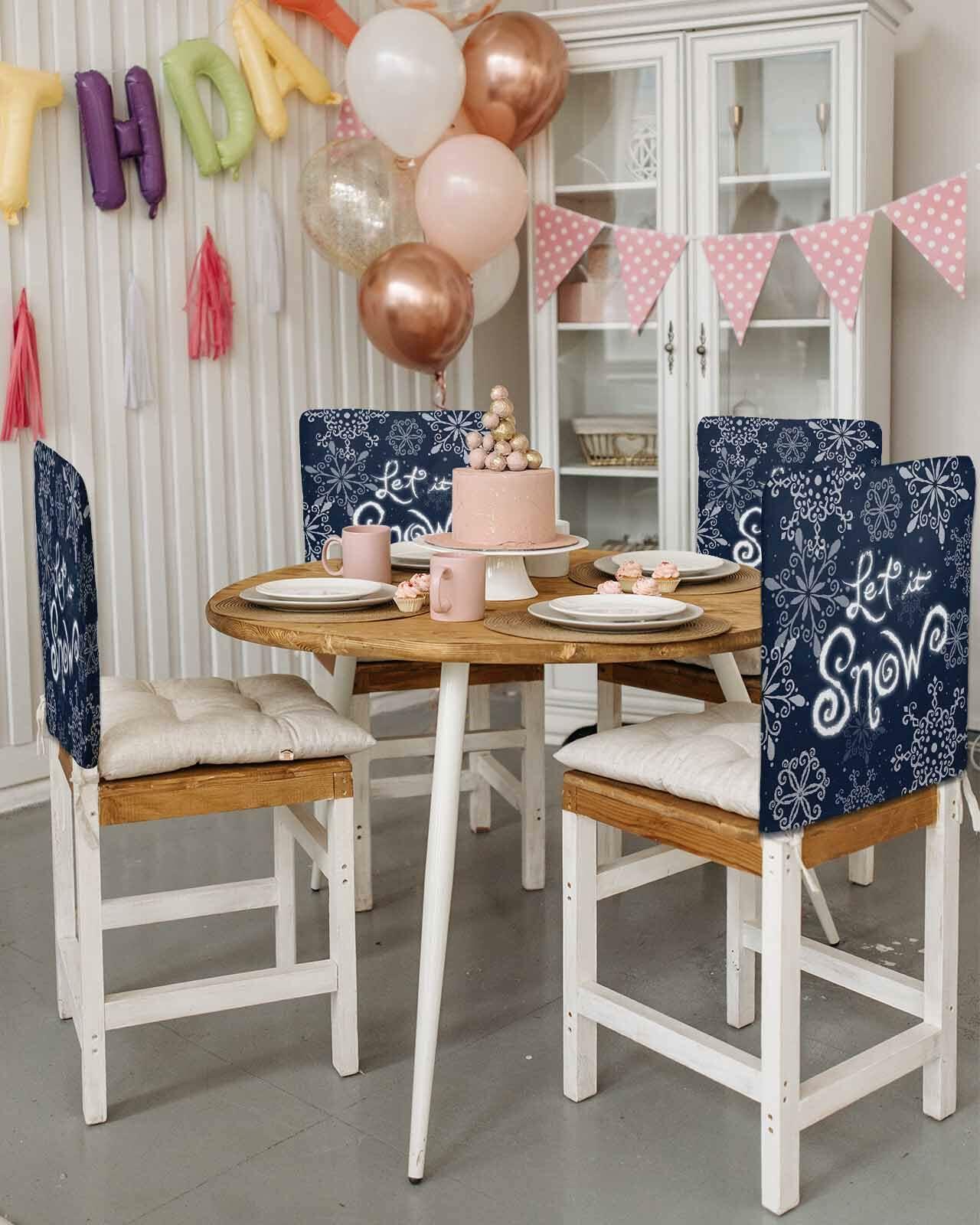 Christmas Chair Covers Set of 4 Snowflake Chair Slipcover Protector Washable
