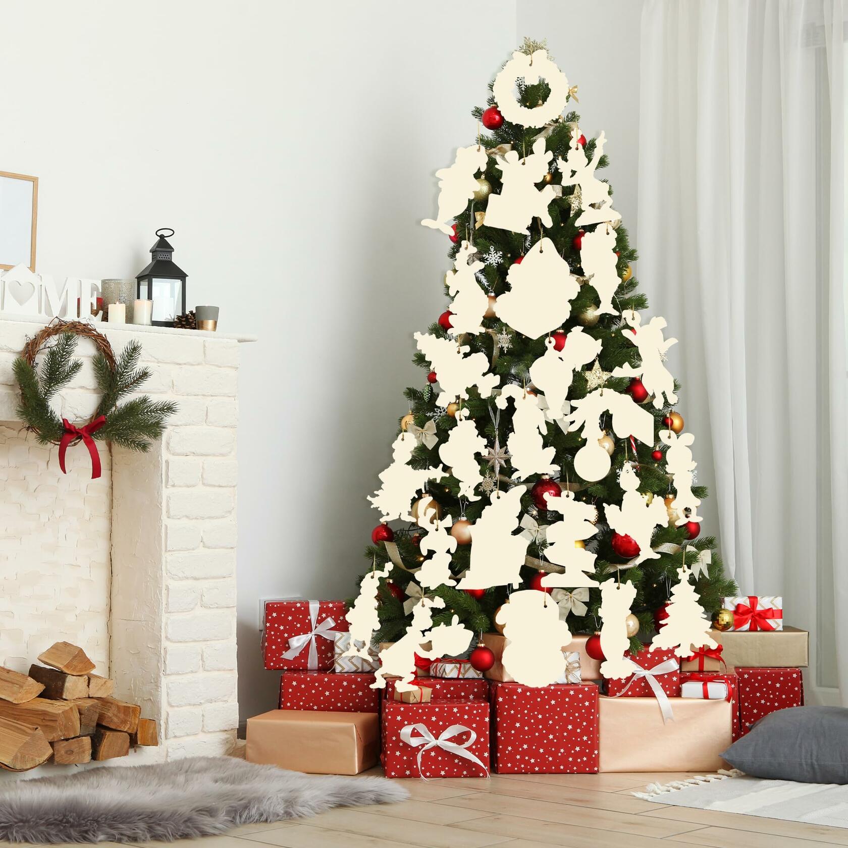 Christmas Green Monster Paper Card Ornaments Set of 24 Xmas Decorations