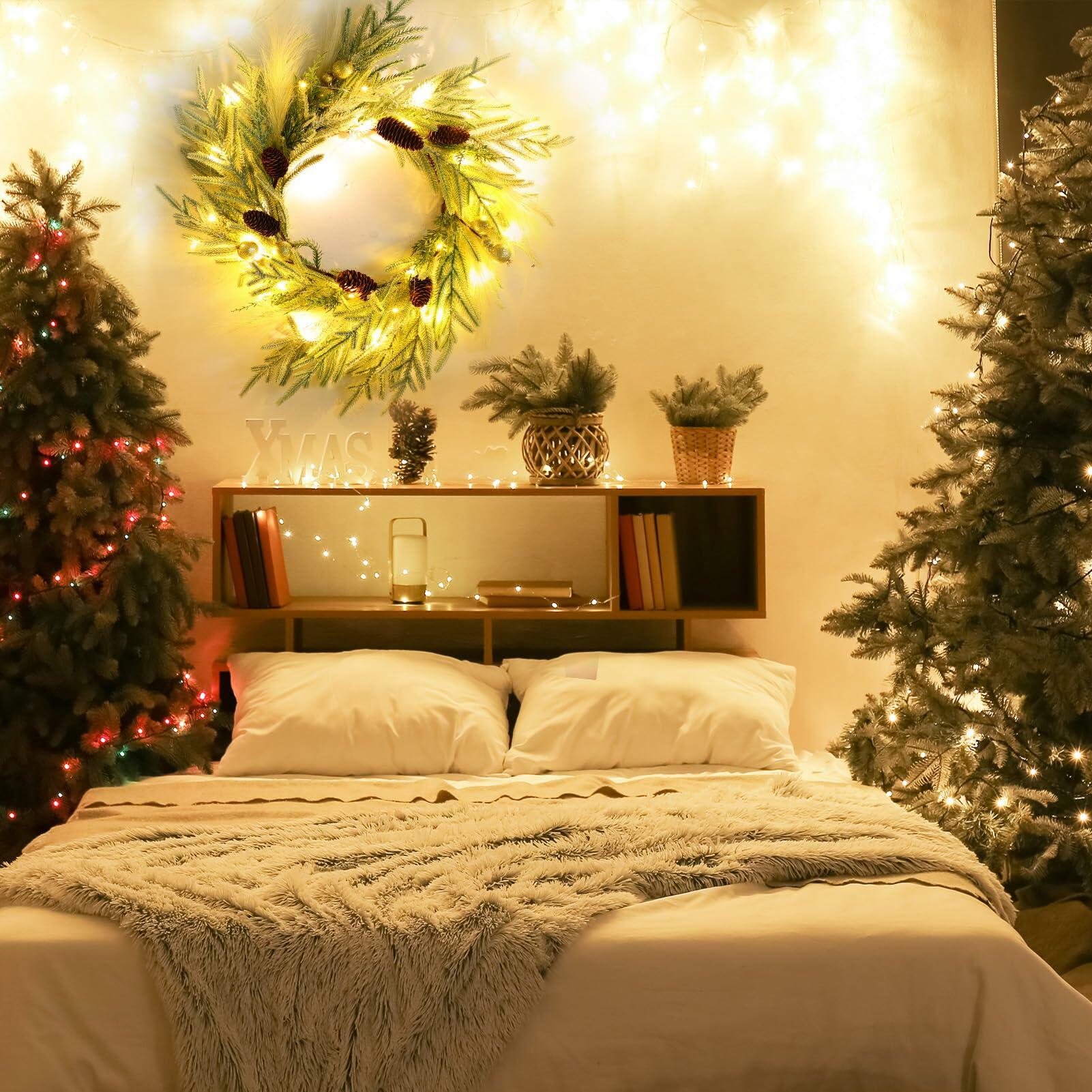 - Wide Application: the artificial Christmas Wreath at the holidays can be hung on the door, flanking an entry way, over and around entry lights, in the middle of windows and mirrors or applied in table-top arrangements inviting welcome to your family and friends; It is nice for front door, window, wall decoration for Xmas, winter to bring the bright colors into your home with this eye-catching decorative wreath
