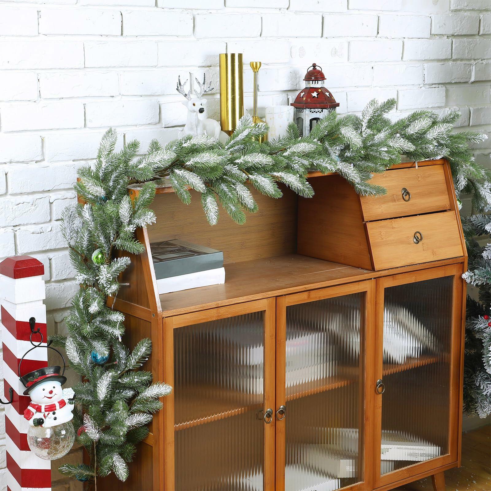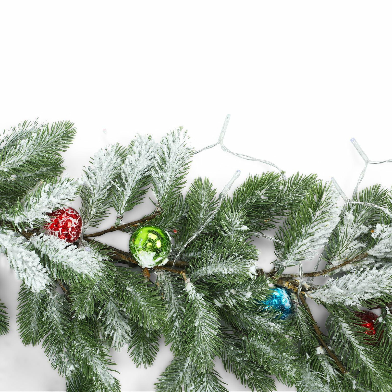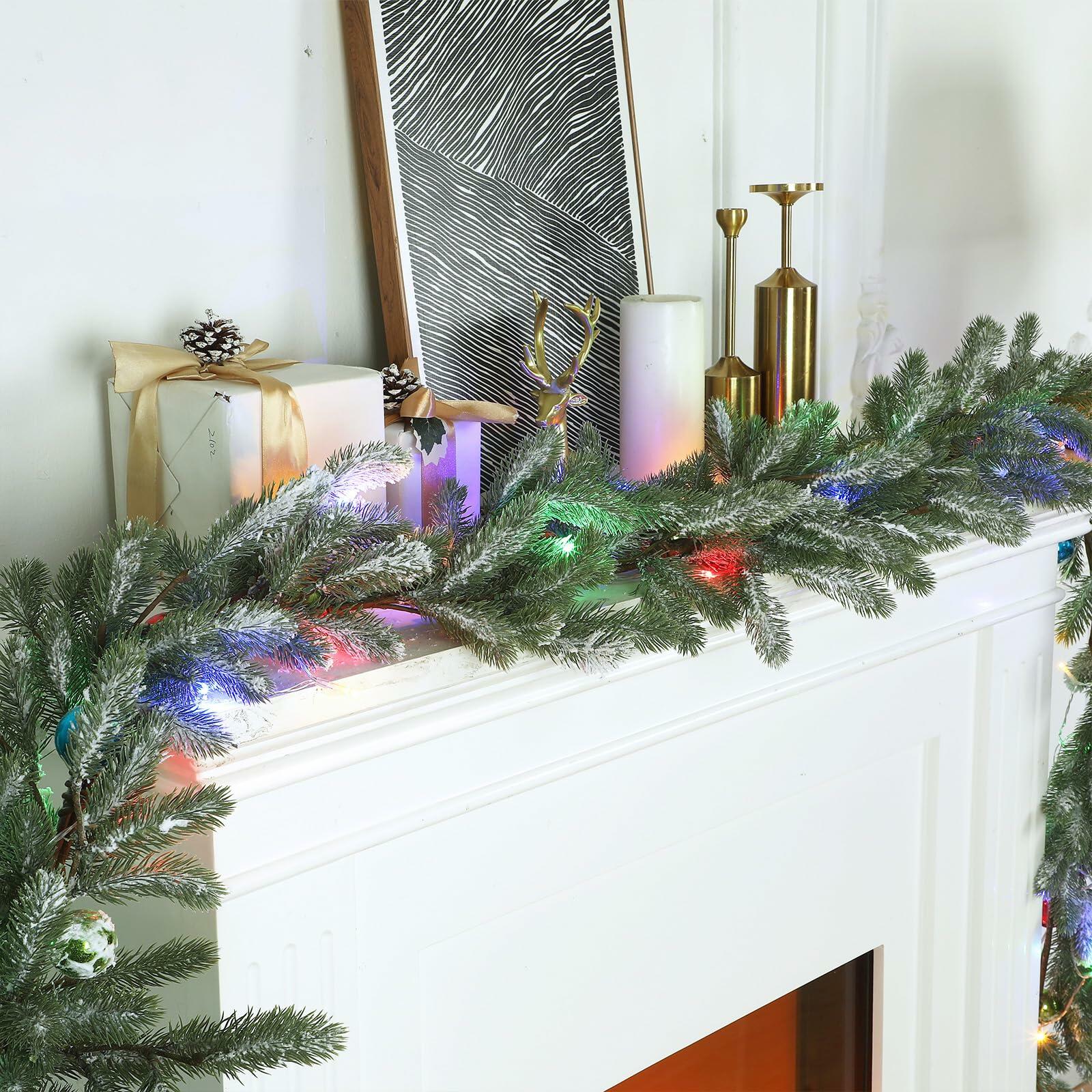 Chuangdi 9FT Flocked Cedar Garland with 50 LED Lights Frosted Pine