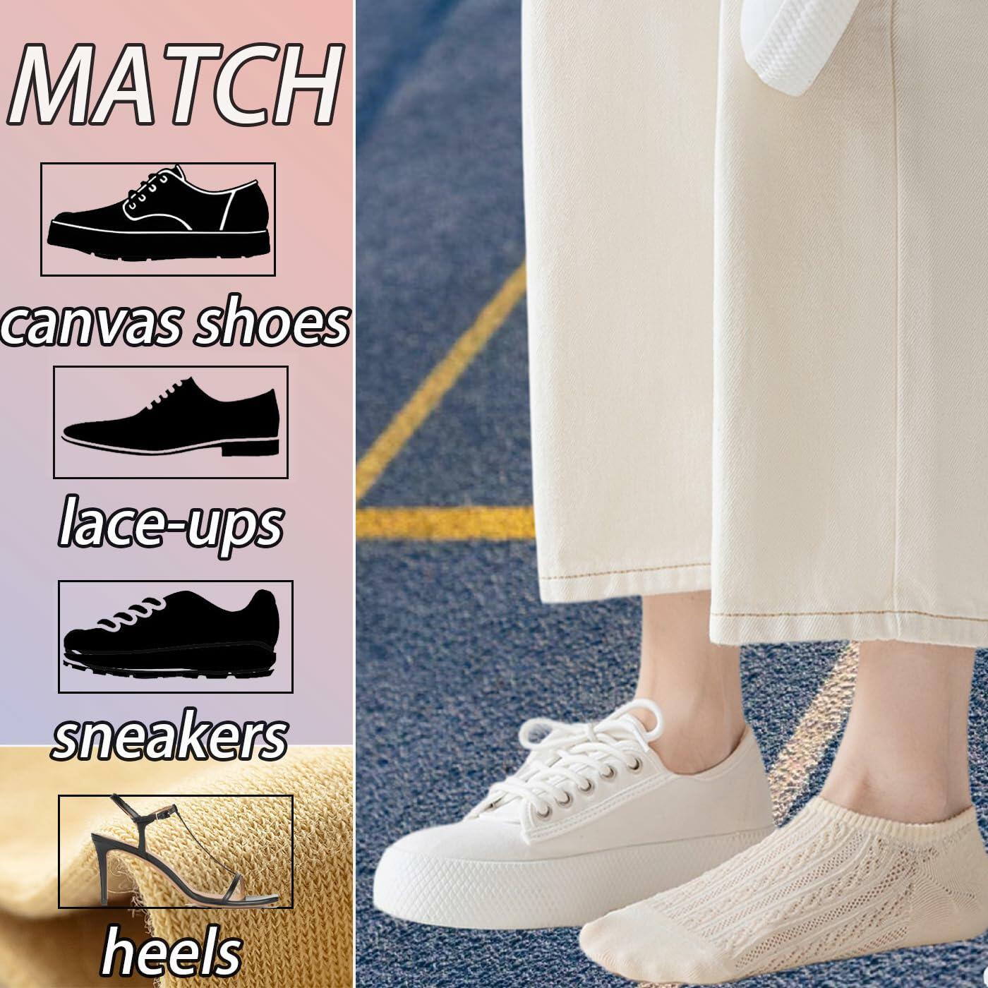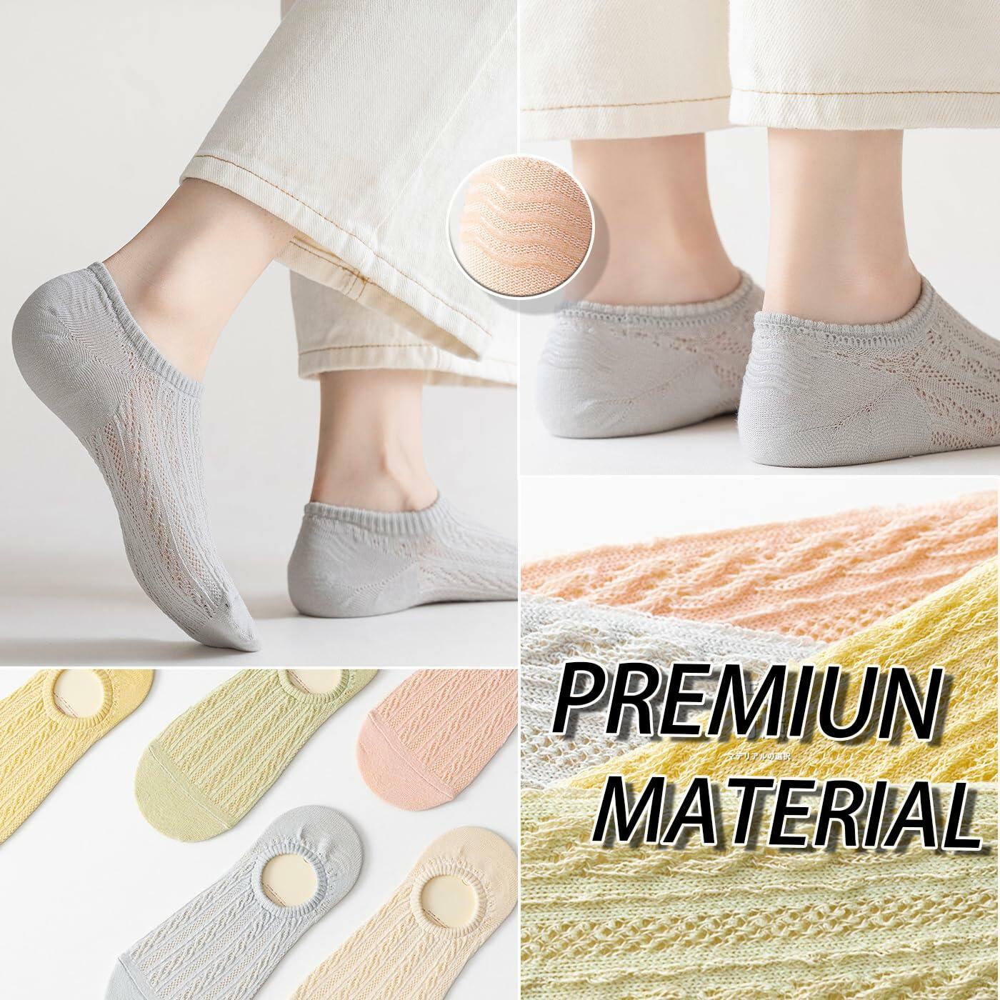 CHUNFO Womens No Show Socks Antislip Seamless Cushioned 5 Pairs Size 5.5-10