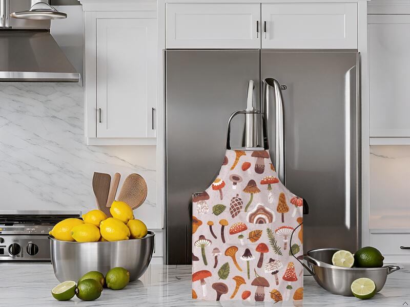 CIAIDU Art Colorful Mushroom Kitchen Bib Apron with 2 Pockets Size 28x33in