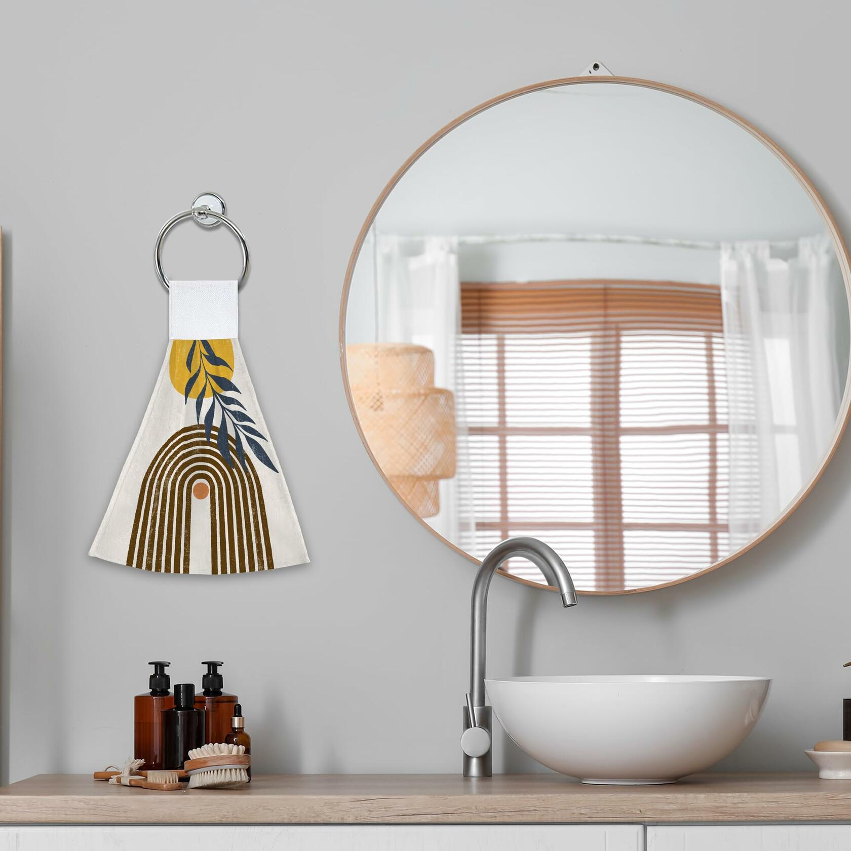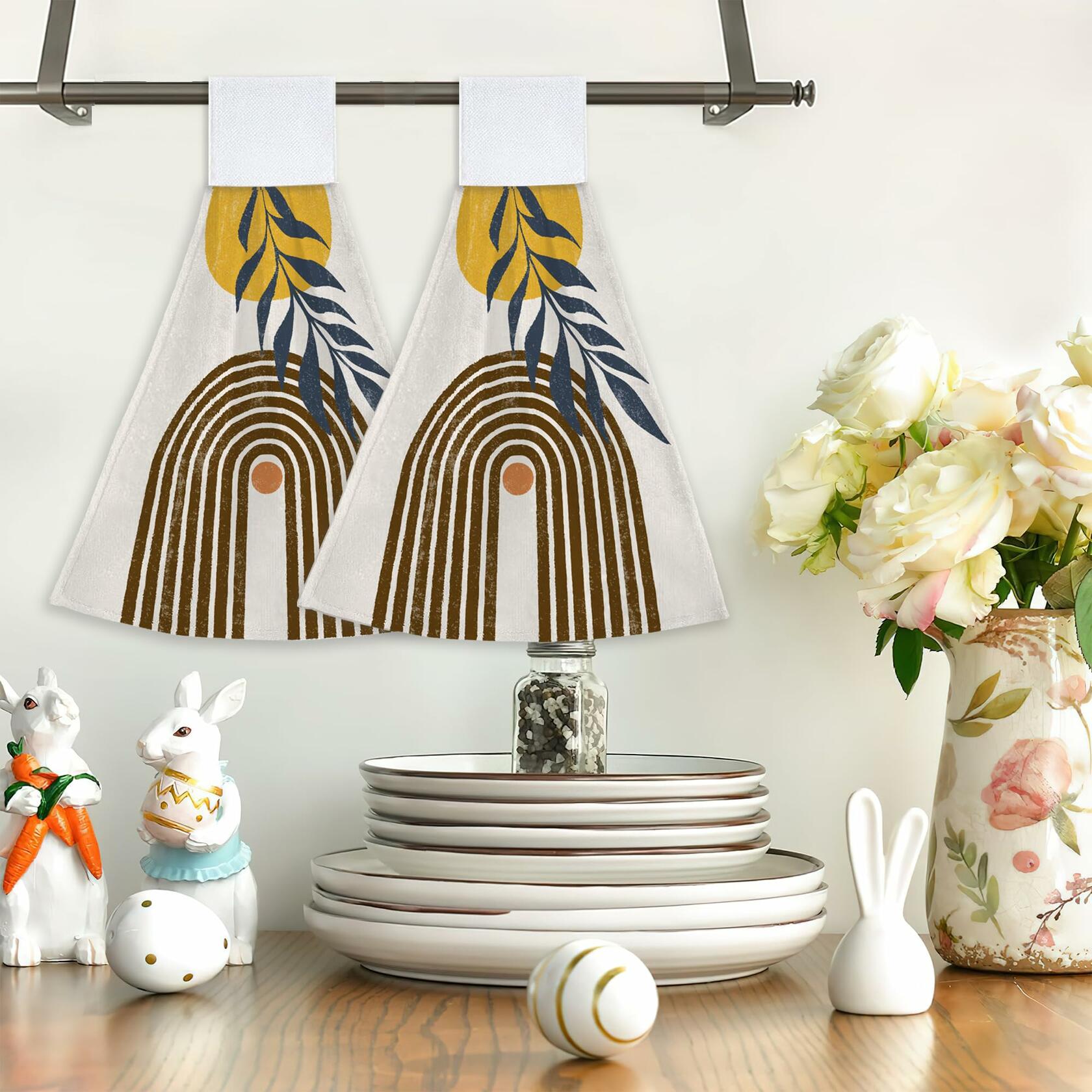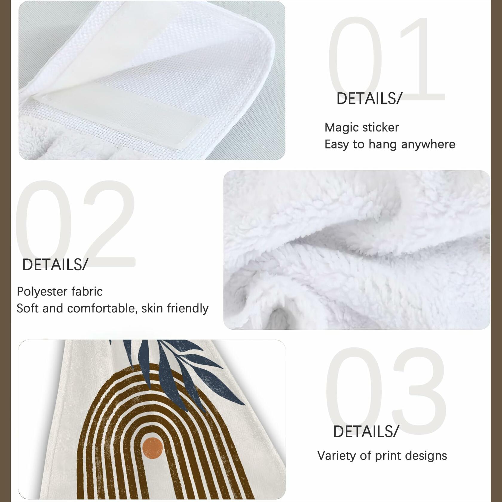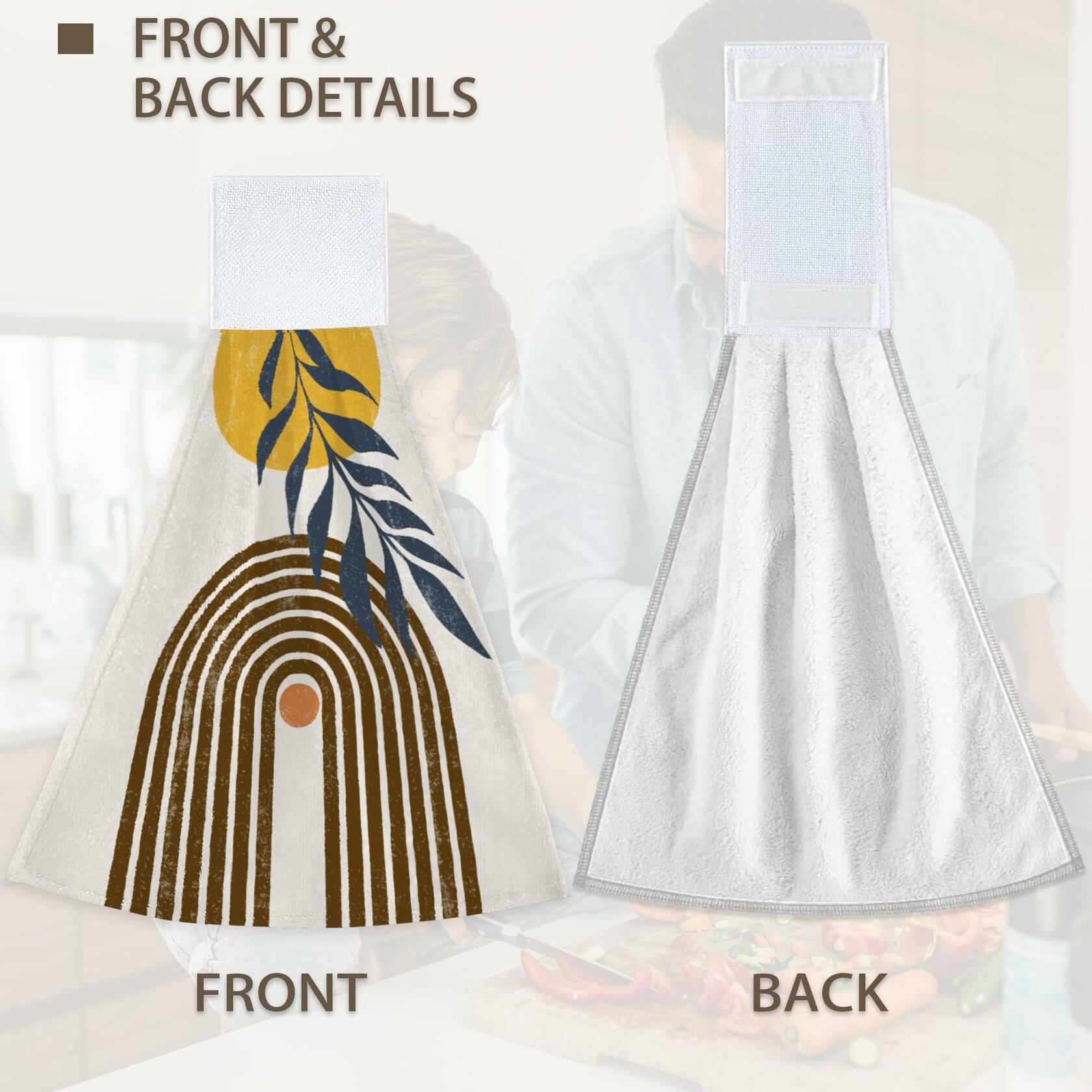 - 【QUALITY MATERIAL】 Made of Polyester, hanging kitchen towels are light, breathable, has good water absorption, wipe no mark, soft touch, not easy to fade out catkin. Top Velcro design, easy to hang, hang up and take, convenient sanitation, suitable for kitchen, bathroom, toilet to remove fingertip water stains.