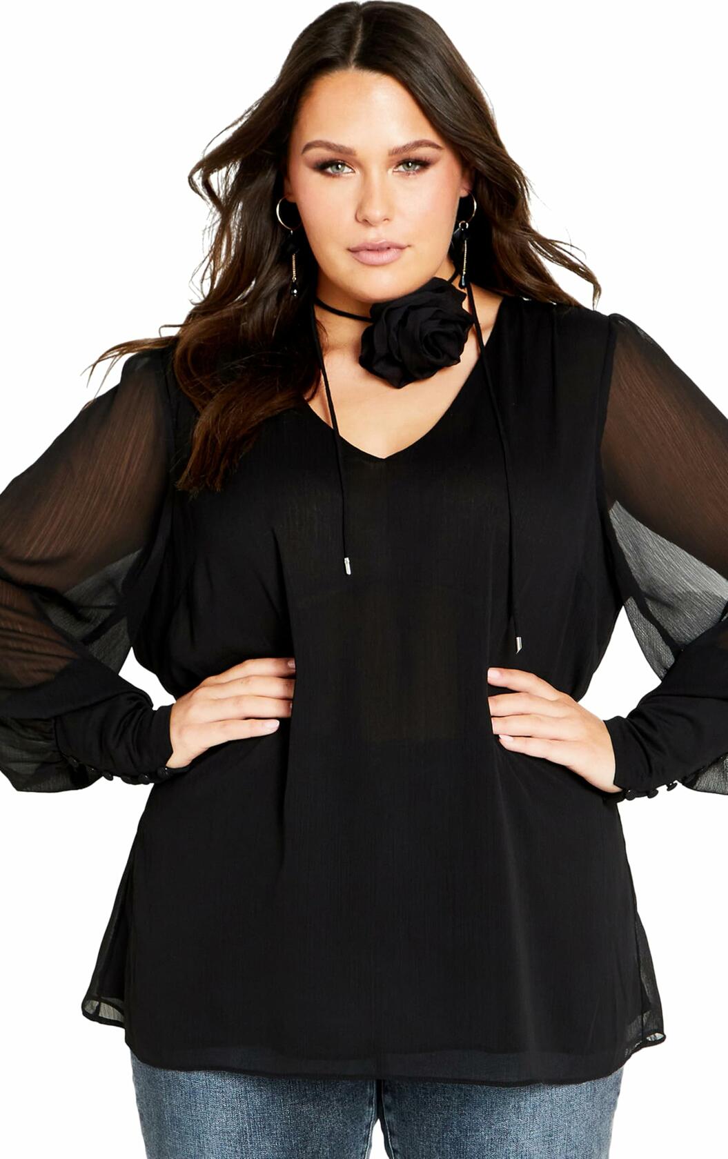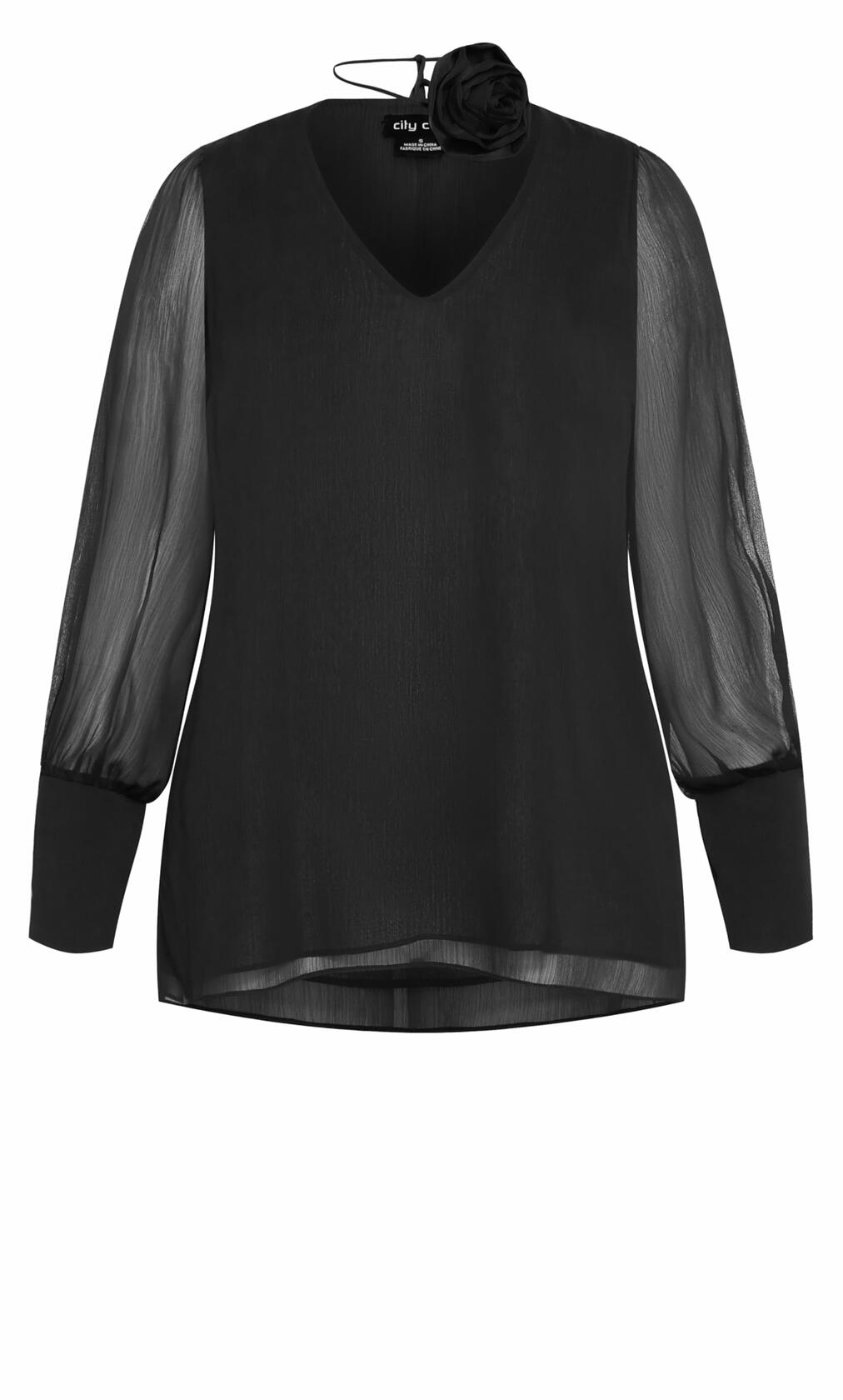 City Chic Women's Plus Size Fleur 2PC Decorative Flower Neck Tie Top 18 Black