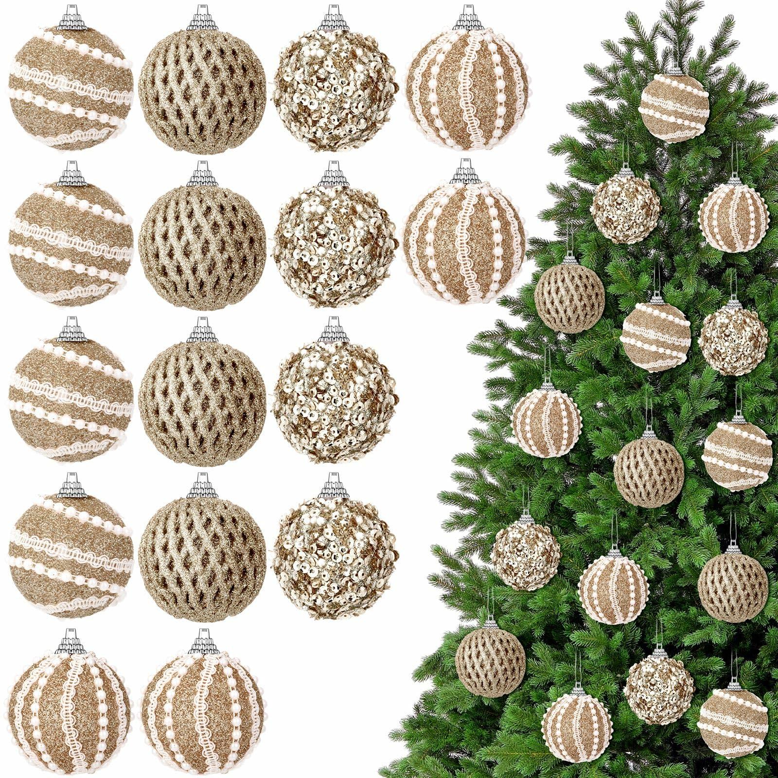 Civaner 16 Pcs Christmas Ball Ornaments Pearl Champagne Sequin Shatterproof
