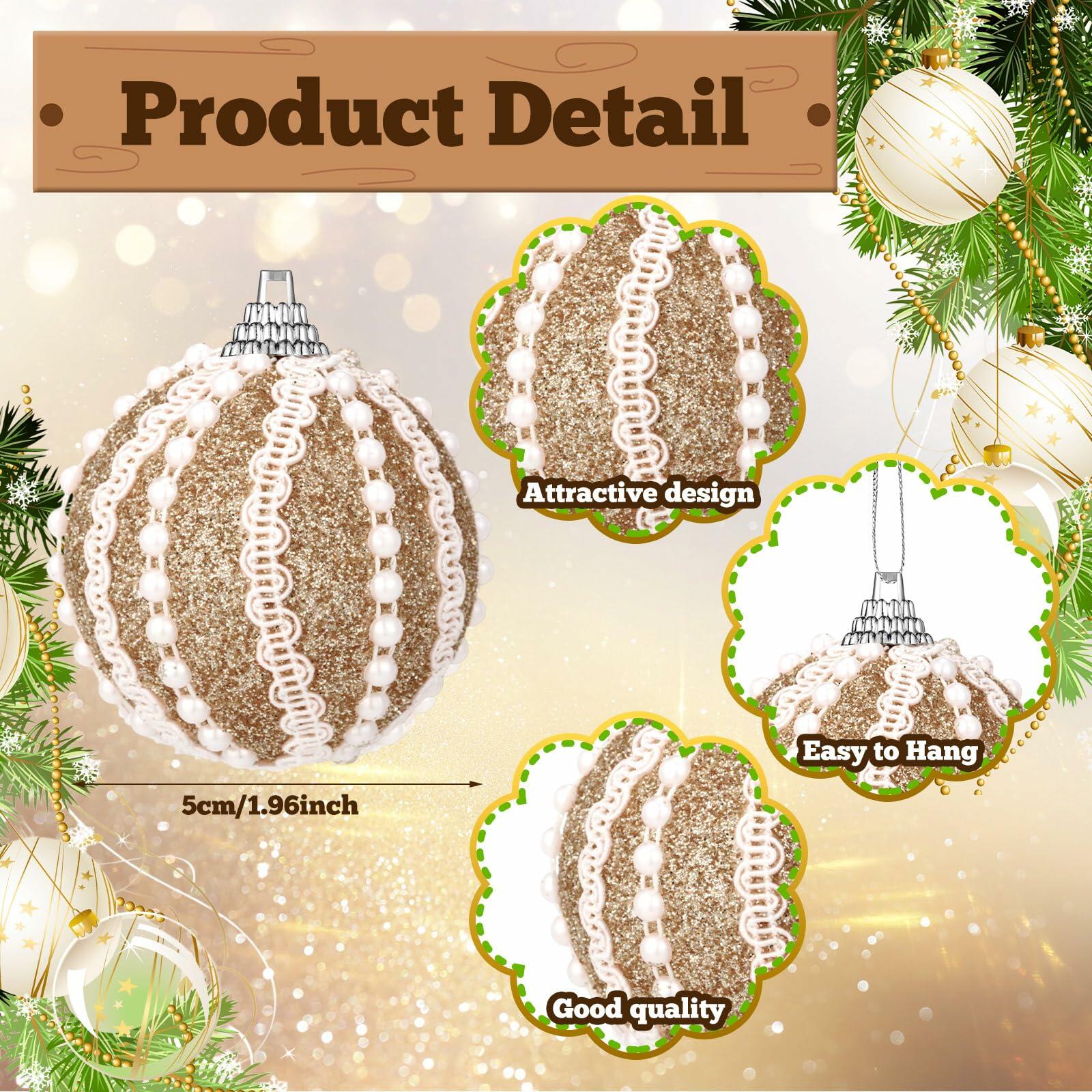 - Quality and Abundant Package: these Christmas holiday decorations are made from quality foam, glitter, and imitation pearls that are sustainable, lightweight, and reliable; The packaging includes 16 shimmering champagne colored ball ornaments that can ensure longevity while maintaining style and grace