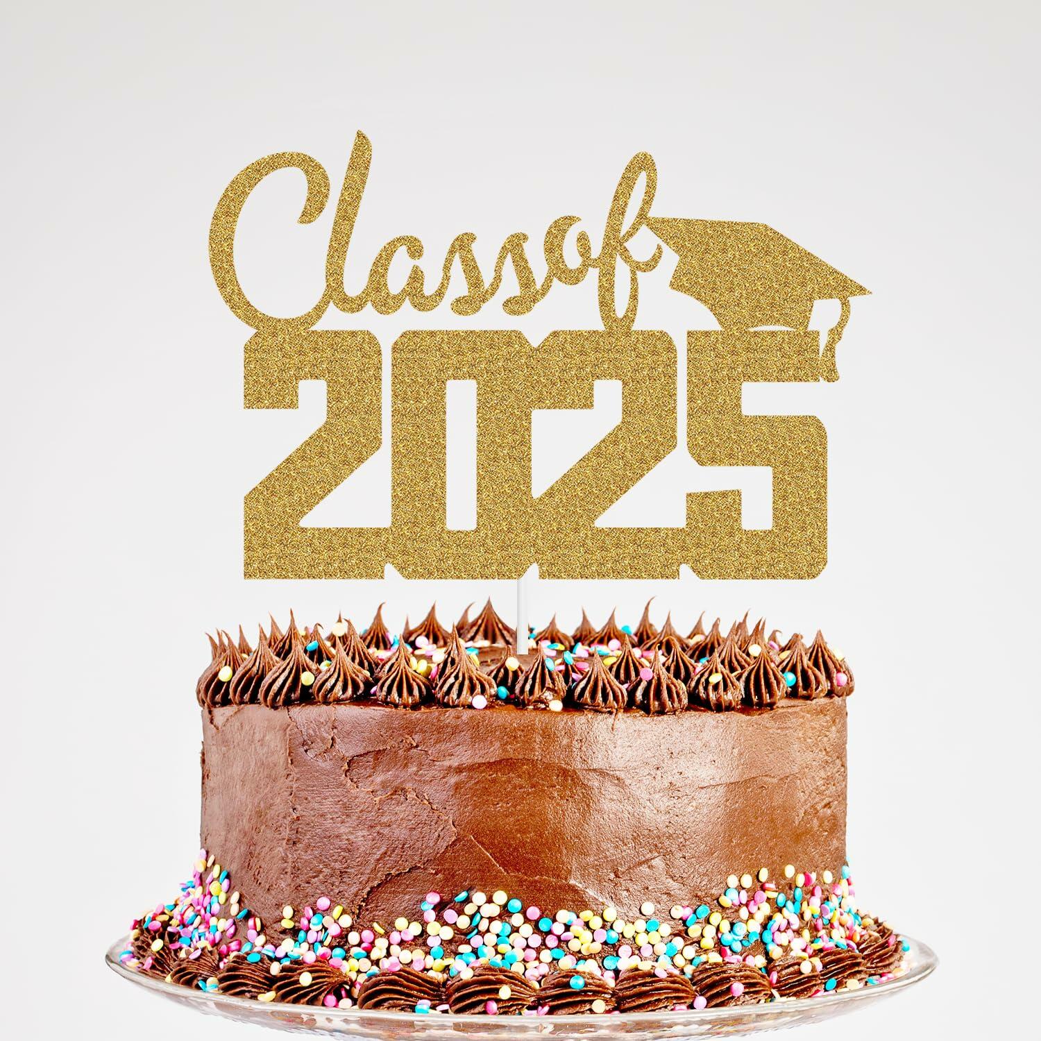 Class of 2025 Cake Topper Graduation Party Supplies Gold Glitter