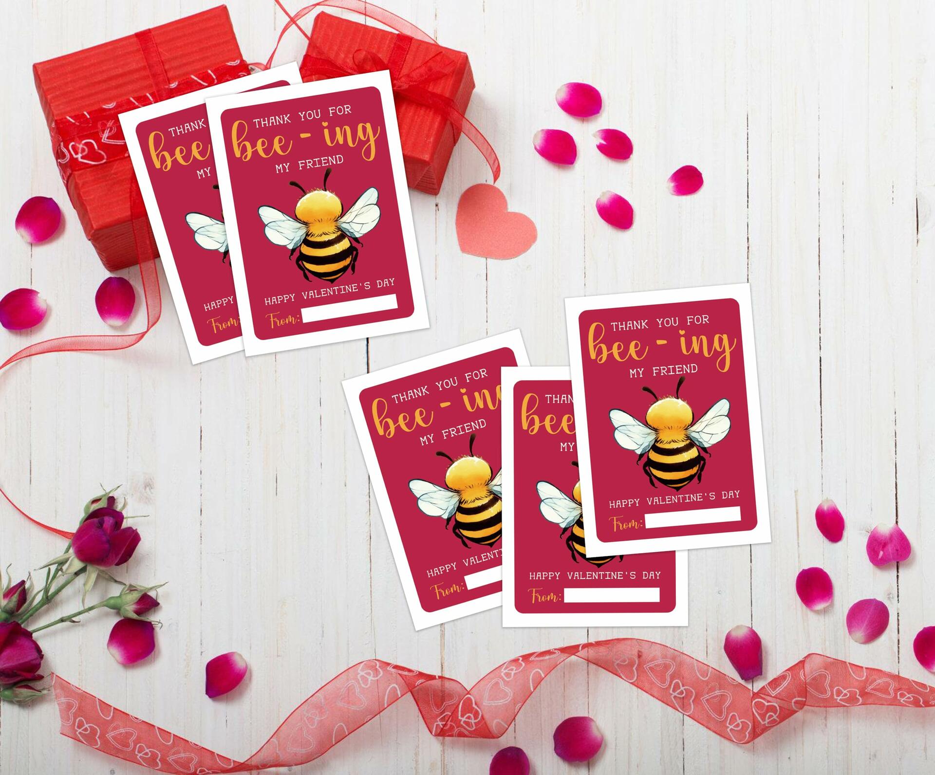 Classroom Valentine's Day Cards Bee Design 5x3.5in 30 Pack Gender Neutral