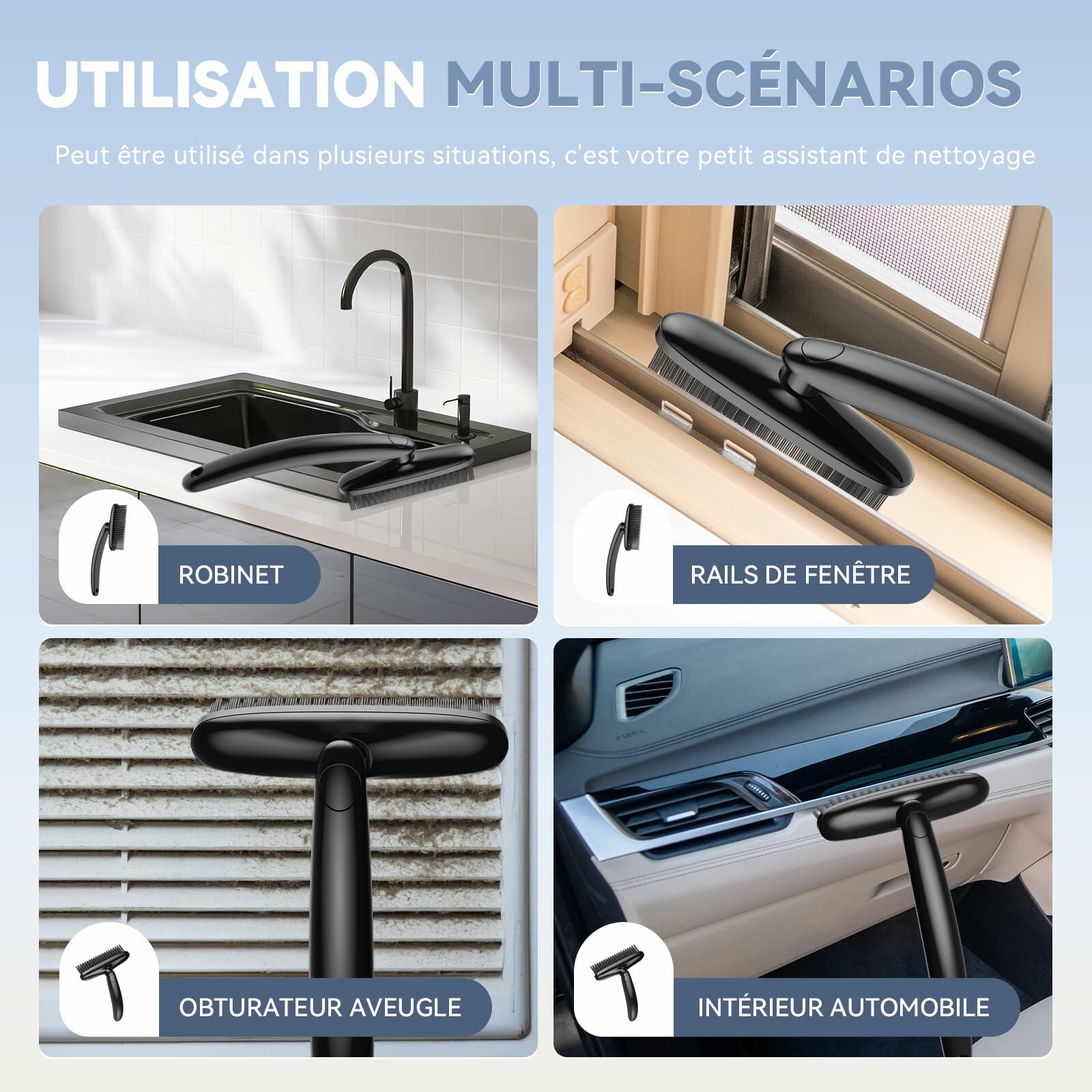 - All Purpose Brushes: Suitable for cleaning various surfaces like sink, window track, blind, door track, faucet, car, stovetop, grout lines, basin, floor, keyboards, tub, vents, pool, vehicle, furniture, boat, countertop, microwave, coffee maker, shower door frames, fans, shoes, sneaker, oven, washing machine, toilet tank baseboard, toilet bowl and more.