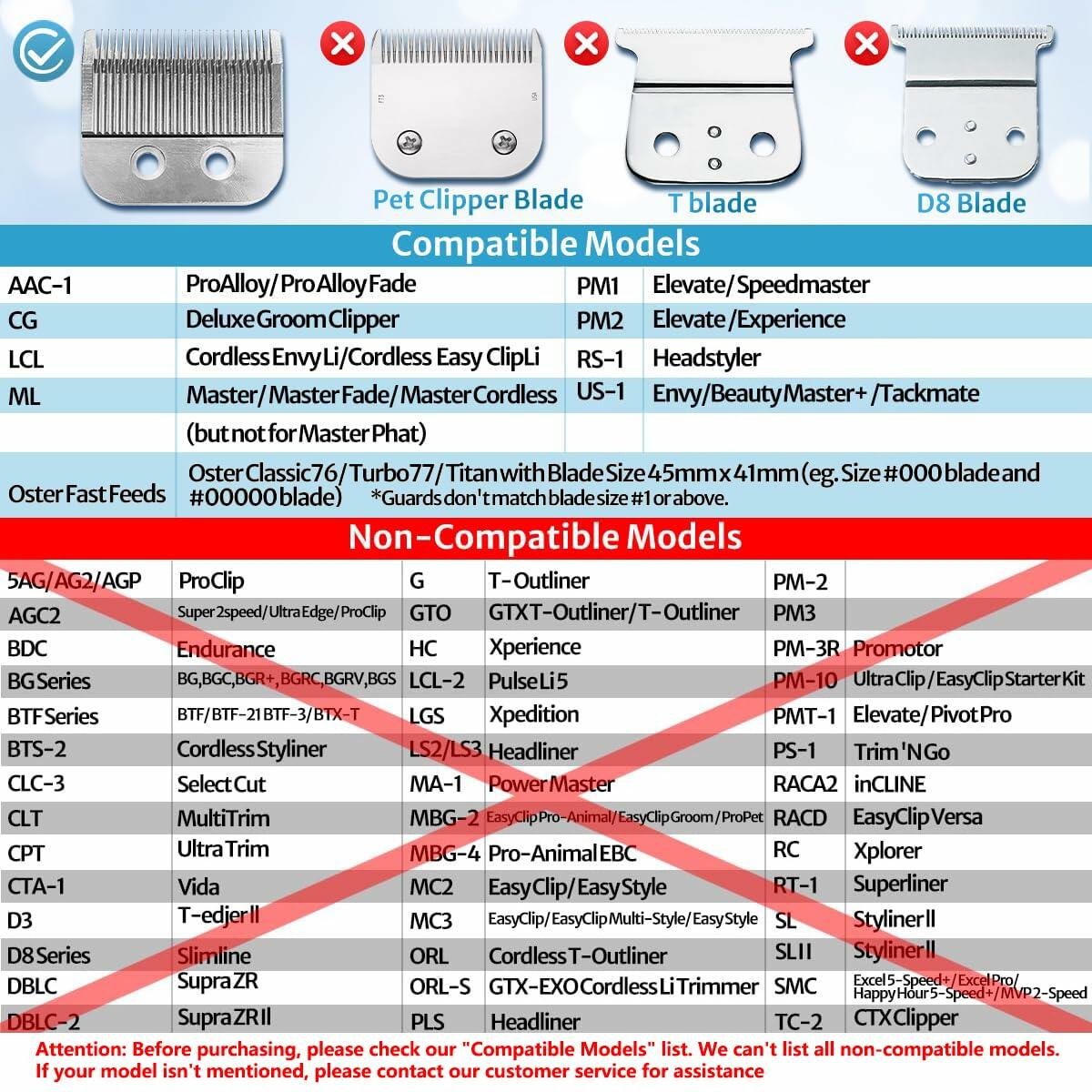 - Fits for Blade size: 1.8" x 1.6" (45mm x 41mm). It is recommended to measure the blade on the hair clipper before purchasing to avoid the problem of model mismatch.