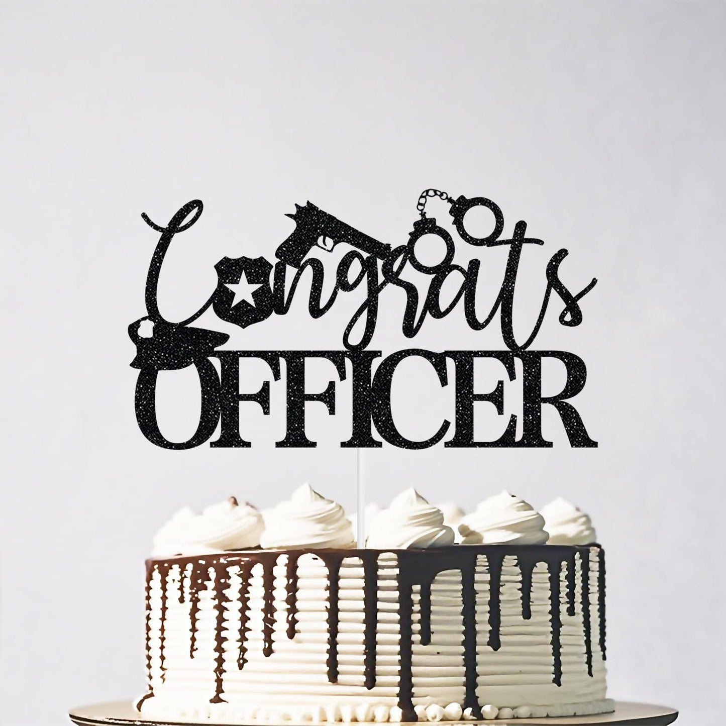 Congrats Officer Cake Topper 2025 Police Graduation Black Glitter