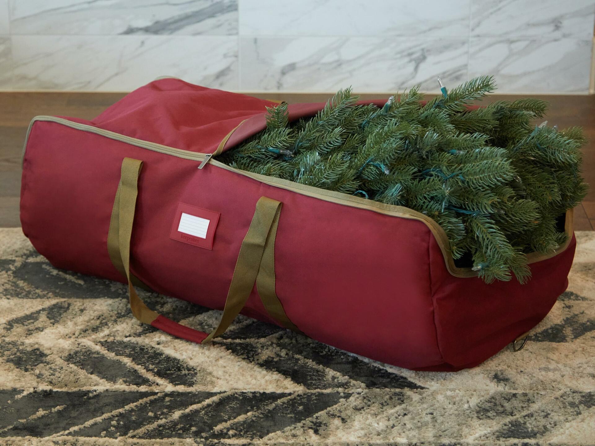 - Make holiday cleanup and storage easy as can be with a canvas storage bag built to carry anything and everything; Use this christmas tree storage box to store your garlands, holiday tablecloths, or even seasonal sweaters and blankets