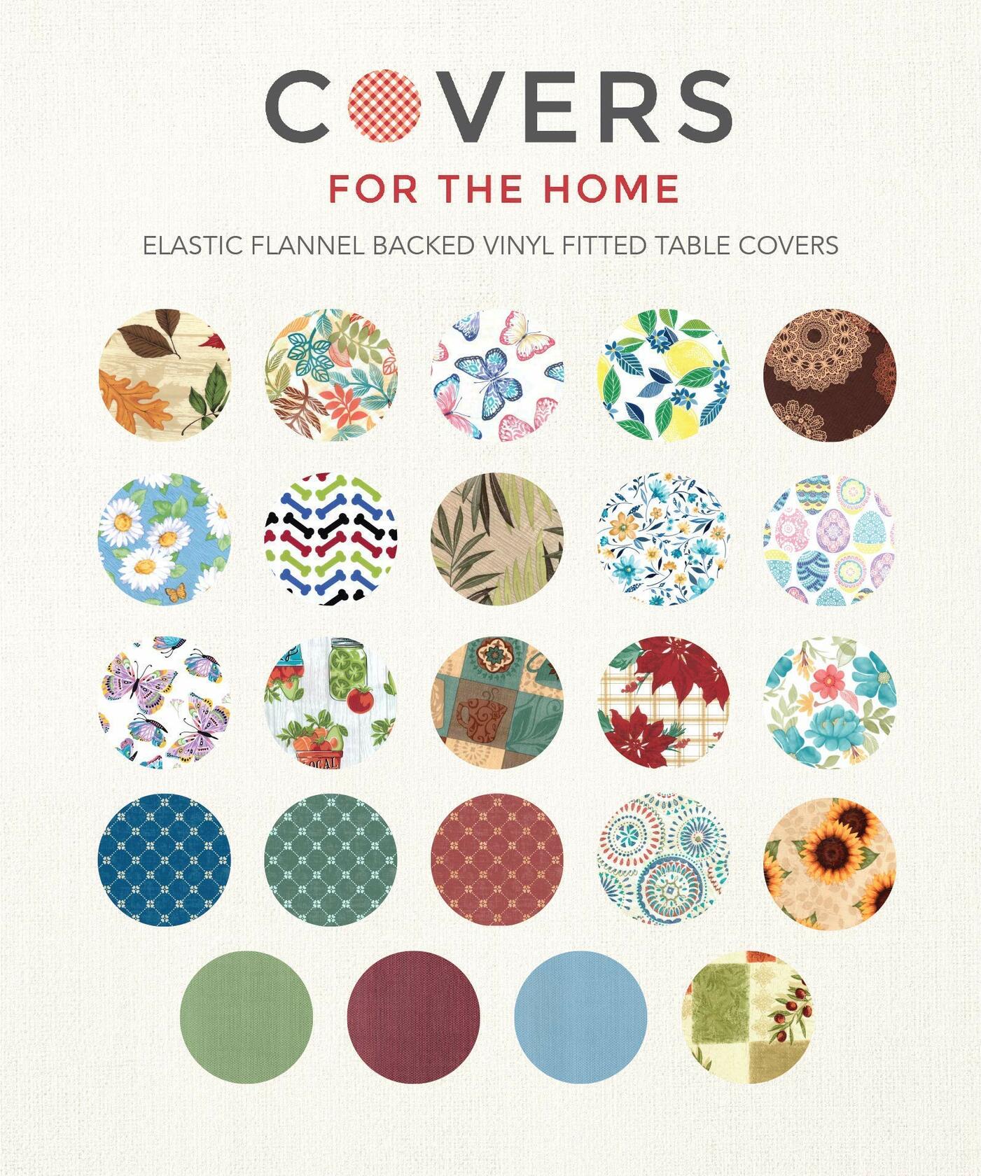 Our Elastic Edge Table Cover is designed with vibrant patterns and an elastic edge to hold the cover tight. 100% of the edges of the cover are sewn with elastic which insures that the cover stays on your table. The polyester flocking on the back protects your fine finish on wood tables. Dress up your tables protected from dust and dents with our Deluxe Elastic Edge Table Covers. Our sturdy PEVA vinyl table covers are softer and sturdier than any other covers youll find. They are waterproof to withstand spills while also dressing up an old table. Our designs are classic to keep your table stylish while also offering the best reputation of protection. Easily cleaned, just take a damp cloth or sponge and wipe clean. With an array of sizes and designs to fit your need our Deluxe Elastic Edge Table Covers are sure to be a great fit!