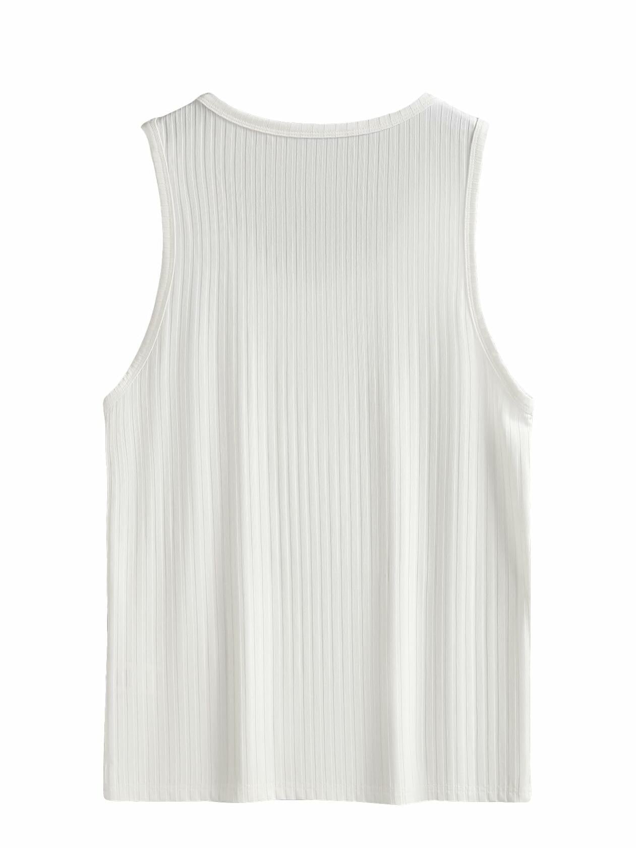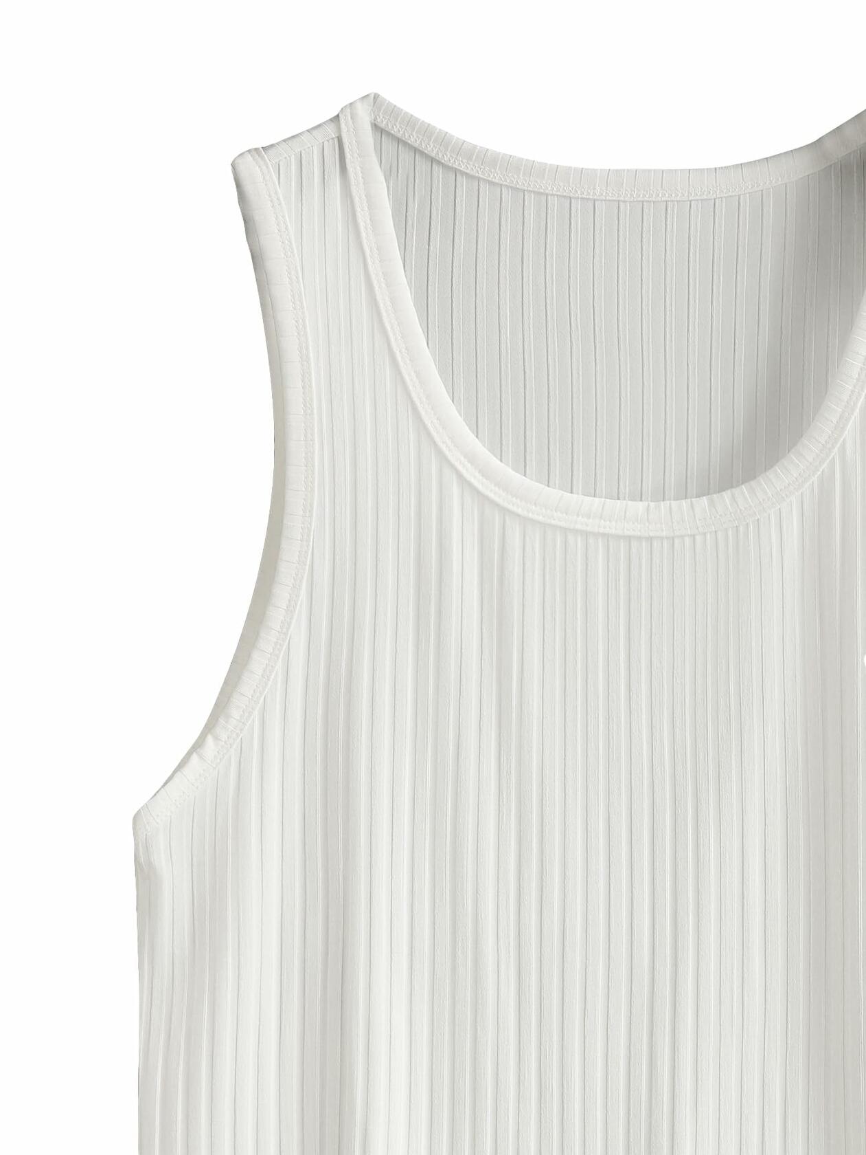 - Features: Rib knit, round neck, sleeveless, solid color, bodycon, casual, plain