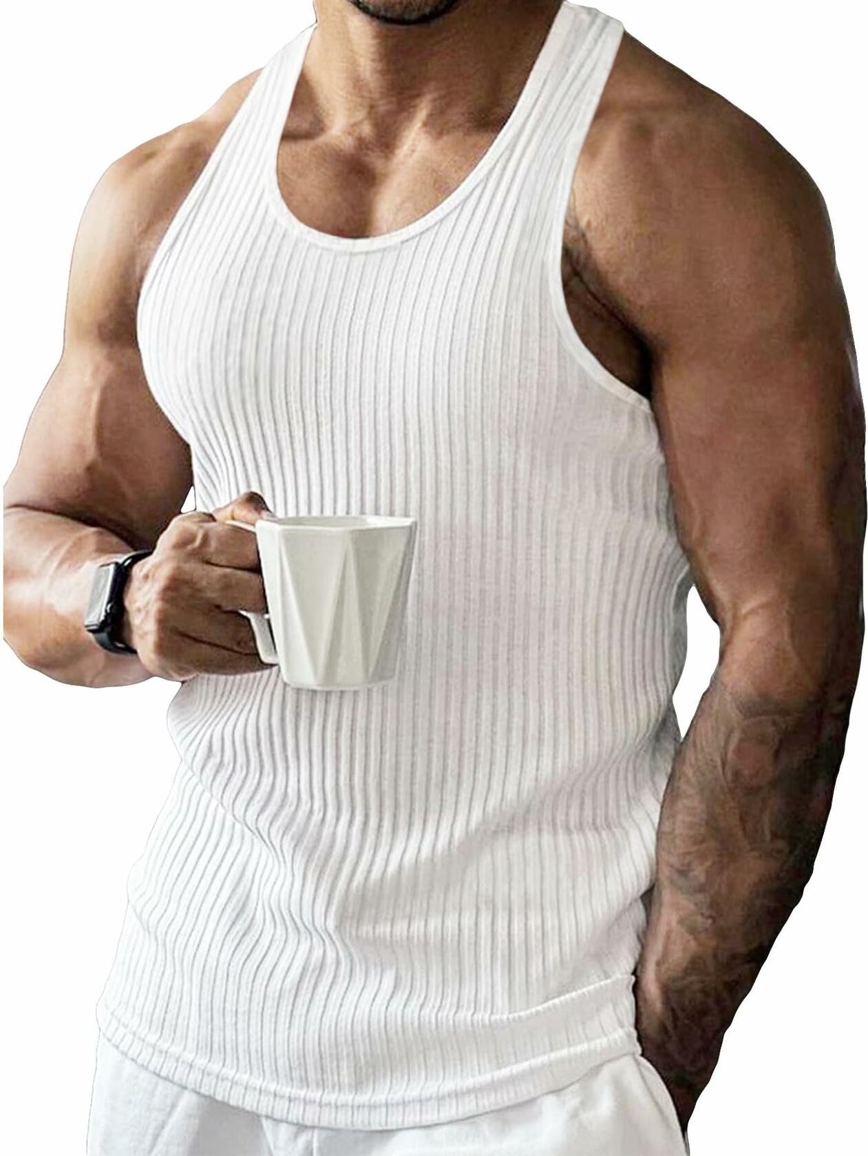 COZYEASE Men's Rib Knit Sleeveless Tank Top Green Small Casual Bodycon