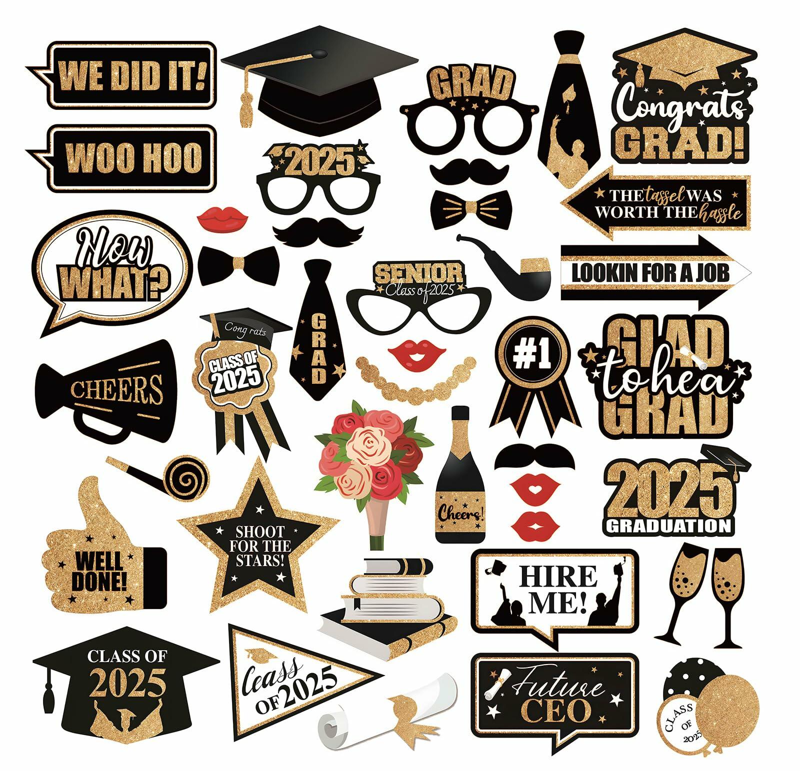CRAWPROP 41PCS Graduation Party Photo Booth Props Class of 2025 Black