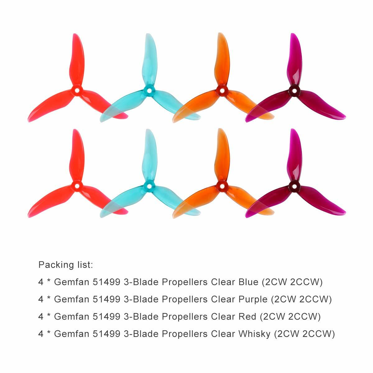 16pcs Gemfan 5043 3-Blade Propeller WinDancer 5 inch 5043 Tri-Blade Props CW CCW for 210 220 250 280 Freestyle FPV RC Drone Quadcopter Frame 2205 2206 2207 2306 5mm Shaft Motors (4pcs Clear Blue, 4pcs Clear Purple, 4pcs Clear Lemon Yellow, 4pcs Clear Pomegranate Red)