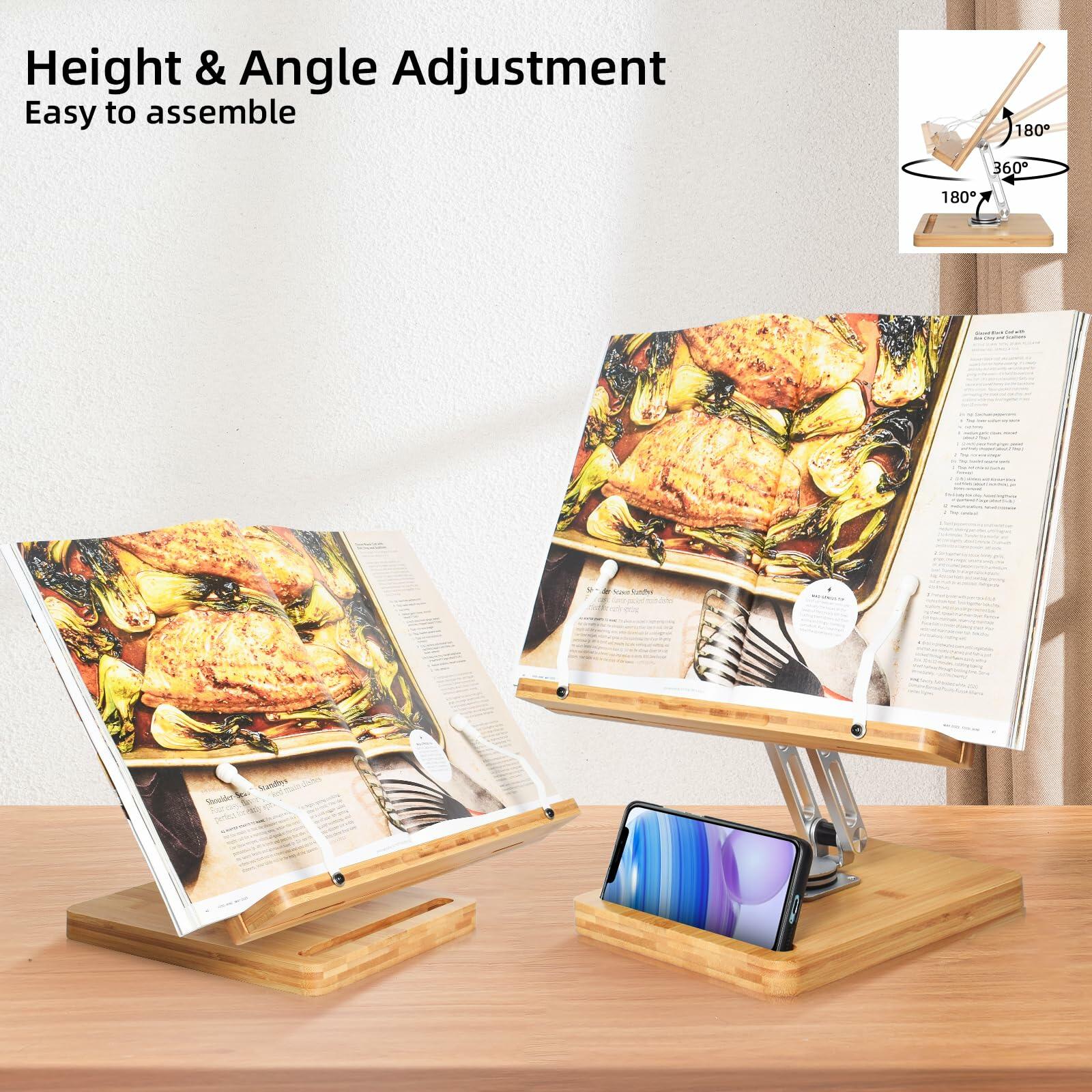 - Aesthetic and Durable: Elevate your space with our bamboo wood book stand. The bamboo base adds natural warmth. Our book holder for reading combines aesthetics and durability.