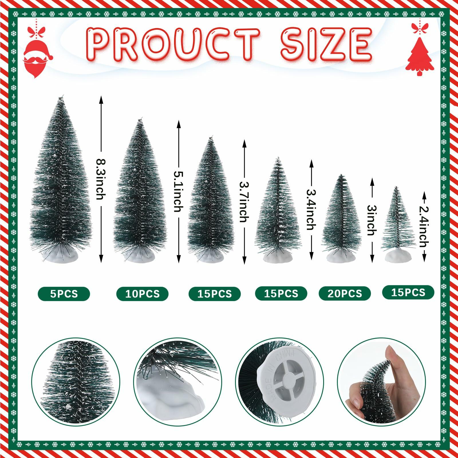 - Diverse Sizes: catering to your diverse decorating needs, these bottle brush Christmas trees come in a variety of sizes, including about 2.4 inches/ 6 cm, about 3.0 inches/ 7.5 cm, about 3.4 inches/ 8.5 cm, about 3.7 inches/ 9.5 cm, about 5.1 inches/ 13 cm, about 8.3 inches/ 21 cm; This range of sizes allows for flexibility in designing your Christmas display, whether on tabletops, mantels or other places you'd like to add a festive and cute touch