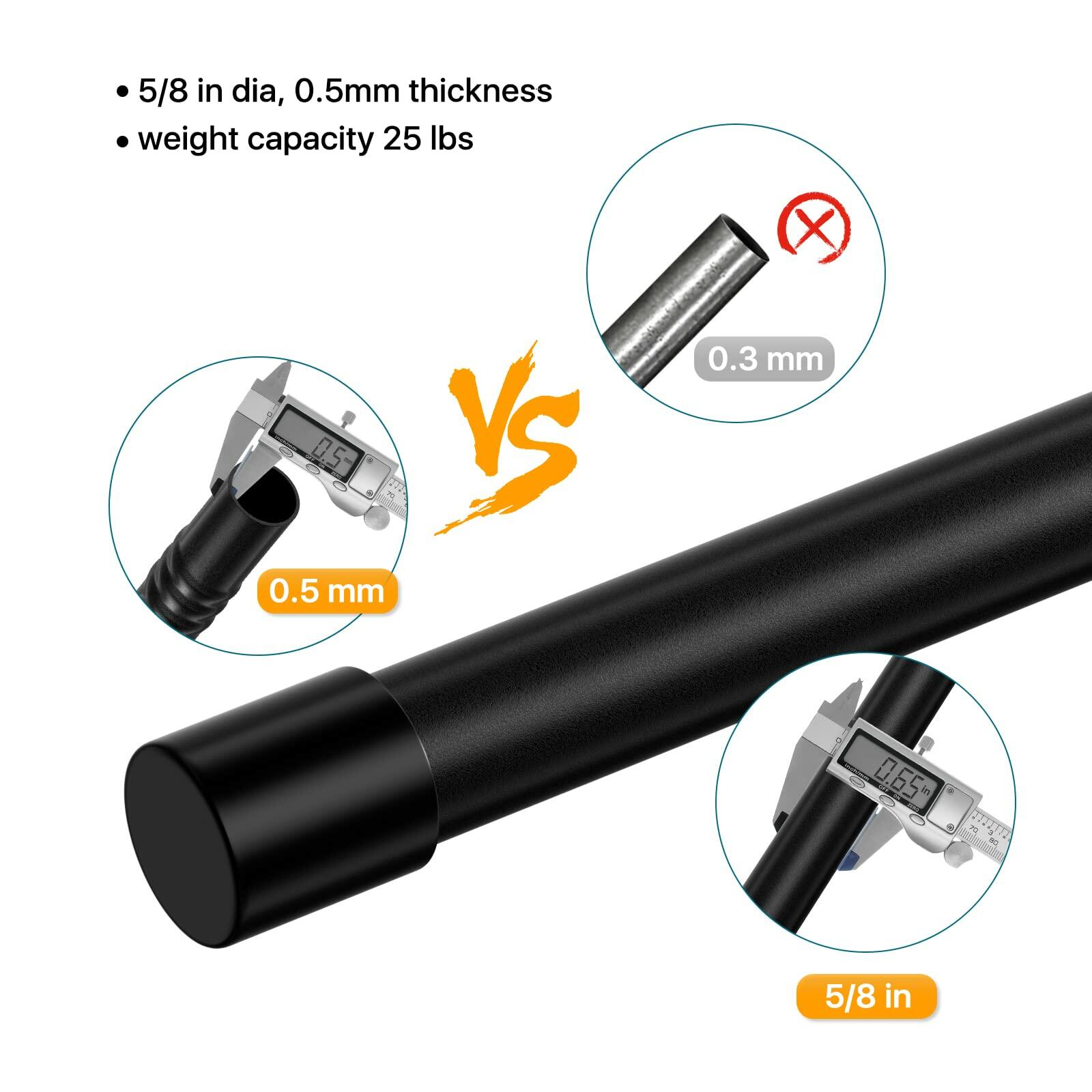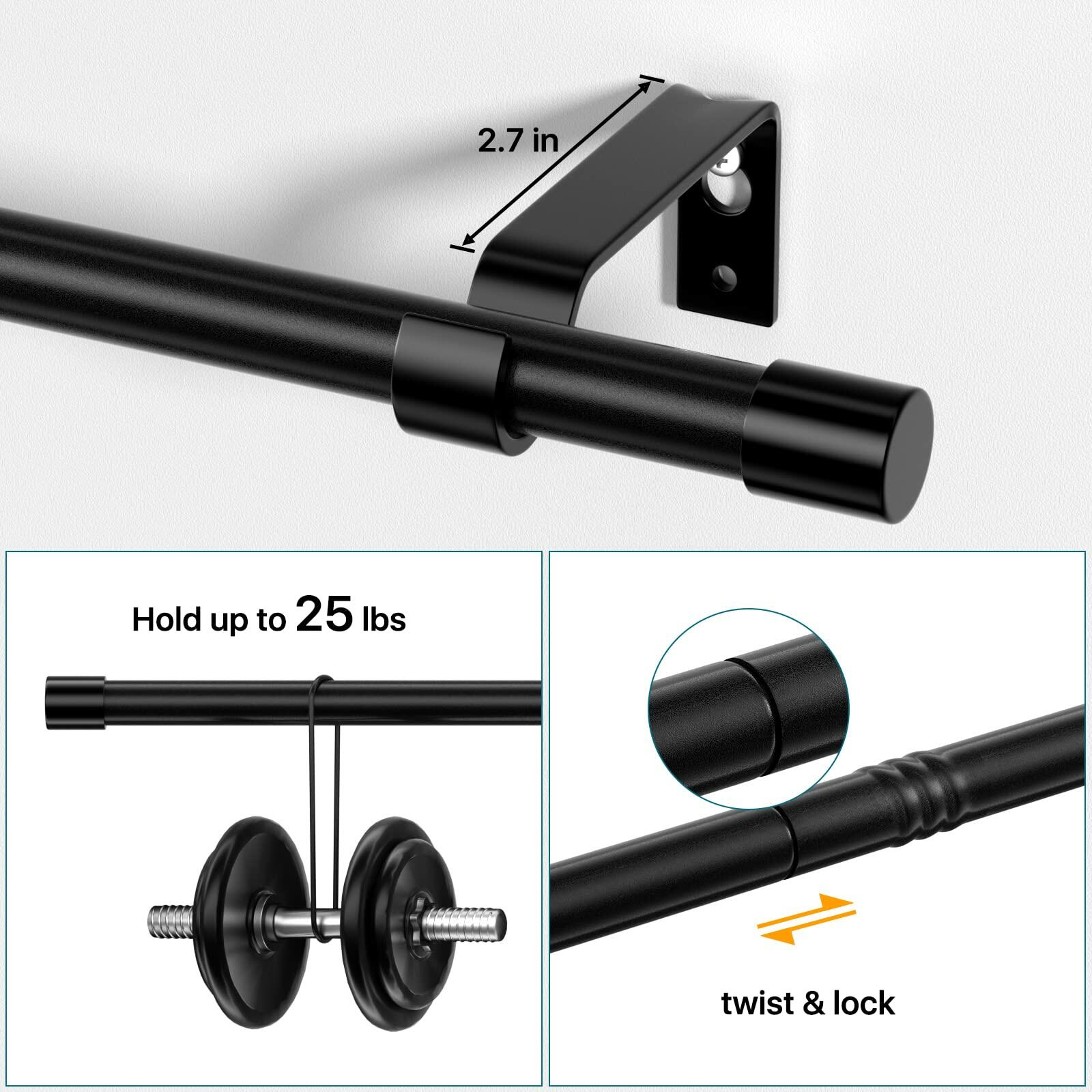 Curtain Rods 28-48in 5/8" Metal Adjustable 2 Pack Black with Brackets
