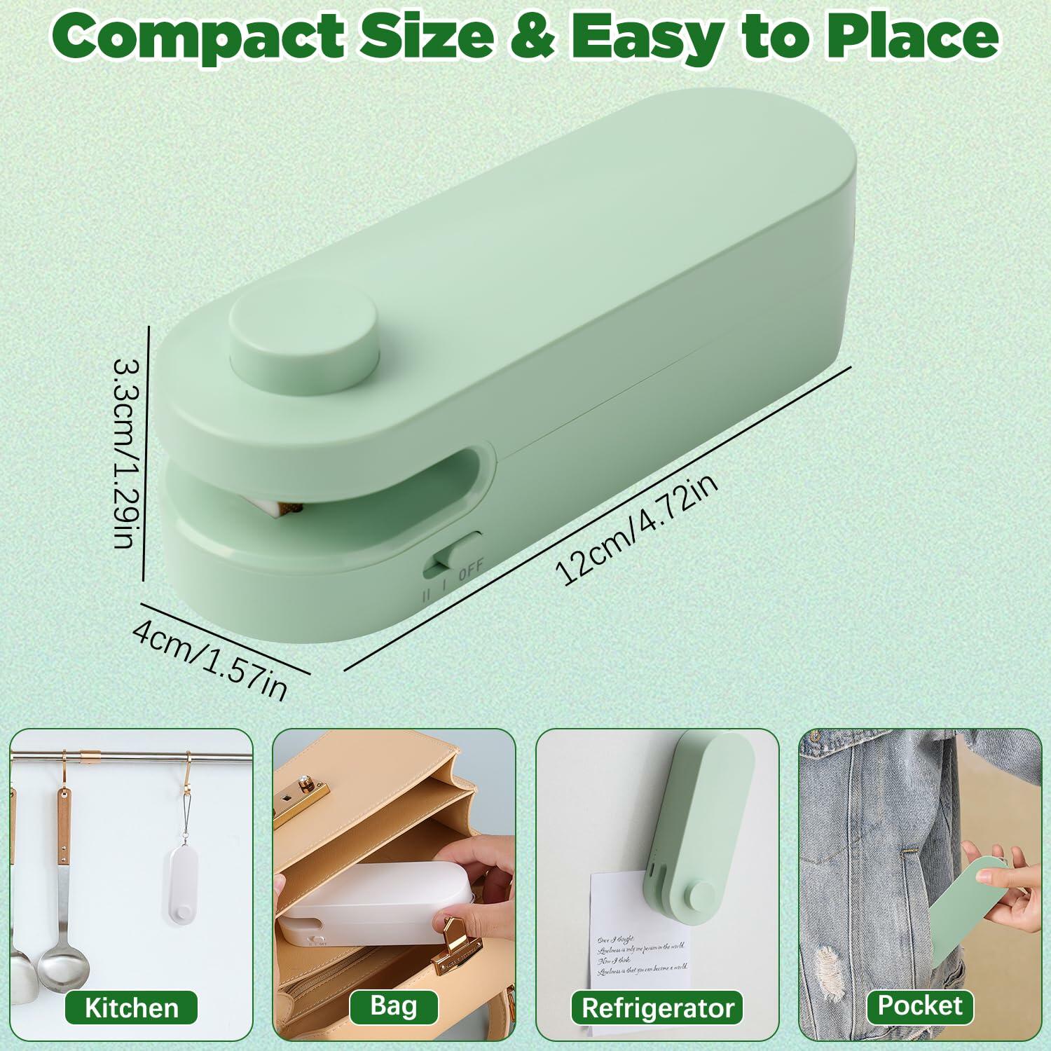 - 【2 in 1 Mini Bag Sealer】Mini chip bag sealer combines sealing and cutting functions in one. The heat sealer is used for resealing bags, and the invisible cutter for opening bags. It's perfect for resealing bags to keep snacks fresher for longer