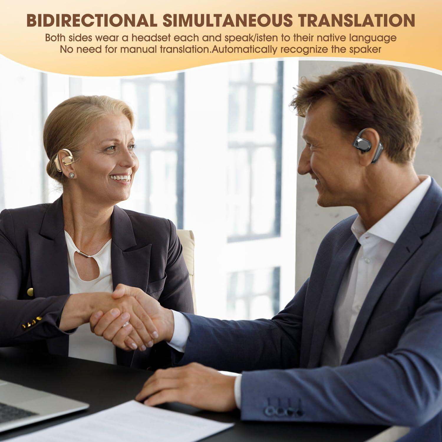- 【Stylish Appearance & Comfortable Design】Translation Earbuds with lightweight materials and an ear-hanging style, making it suitable for extended wear without discomfort. Its fashionable design is ideal for use during travel or work