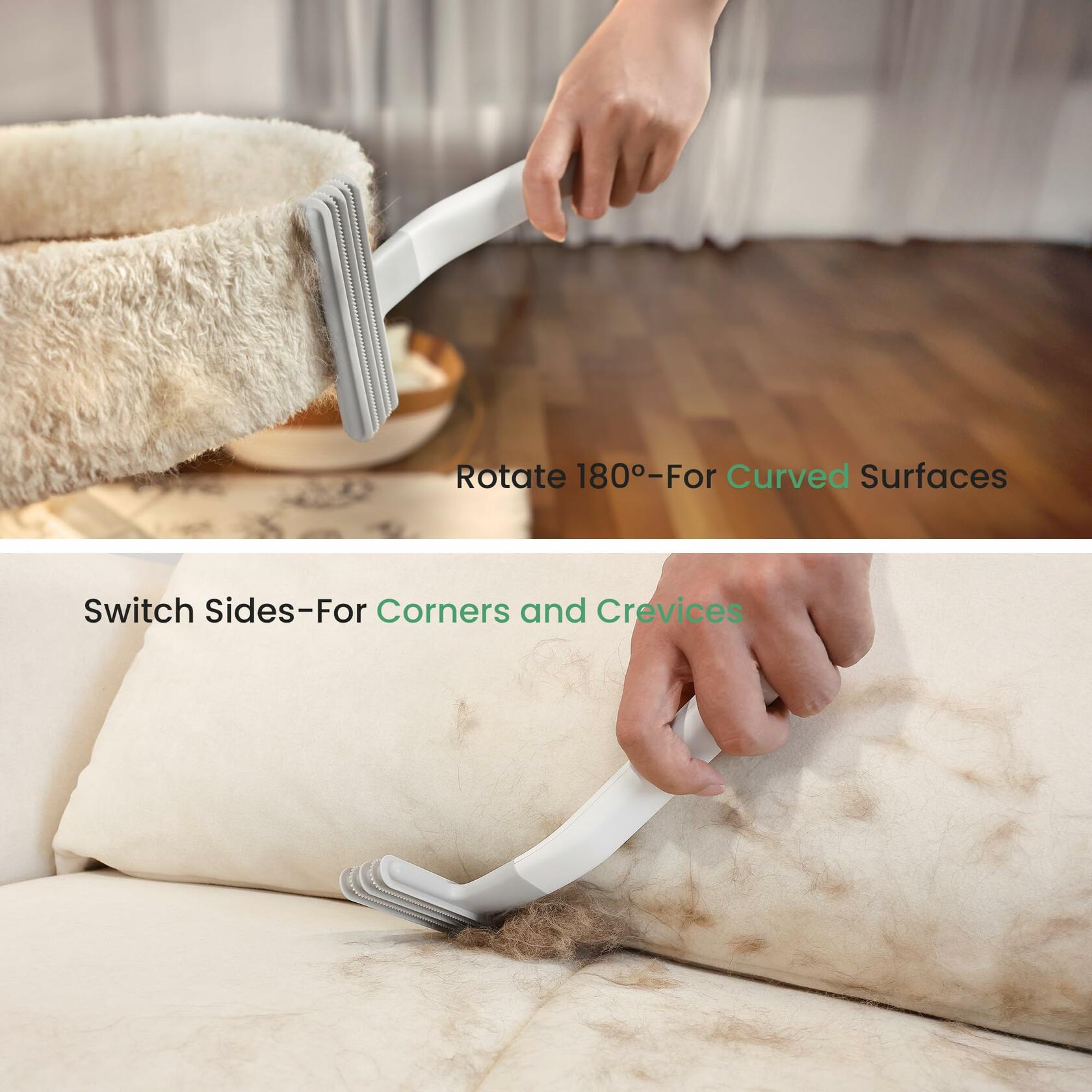 - VERSATILE & WASHABLE: Best suited for small corners and tight spaces, such as couches, rugs, car interiors, and even cat trees. It gathers hair into neat piles, ready for easy disposal - Vacuum it up or simply grab and toss it by hand